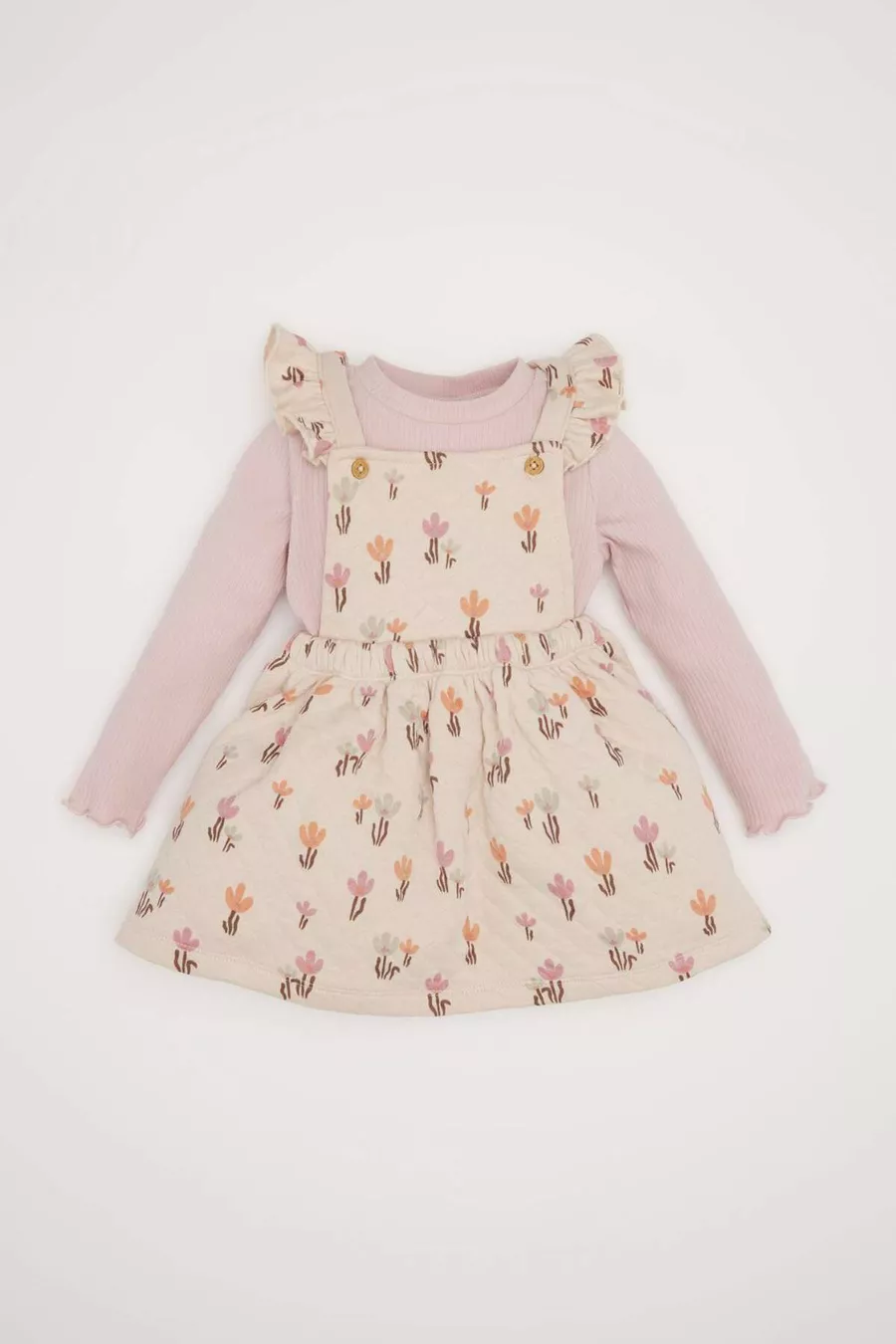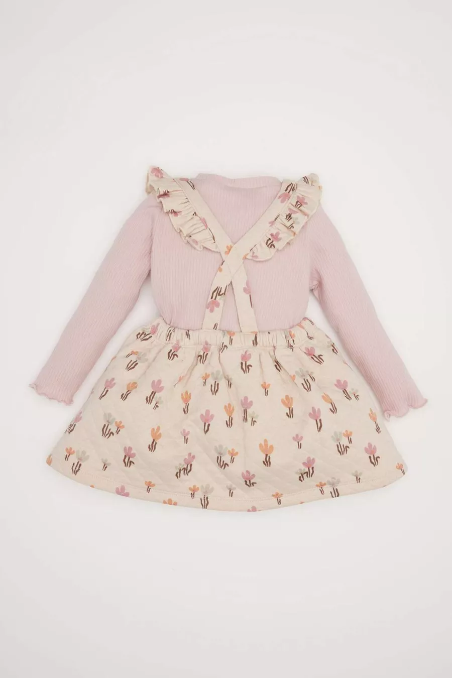 Mädchenbaby 2-teiliges Set Blümchen Rippstrickkleid Basic Einfarbiges Langarmshirt WN