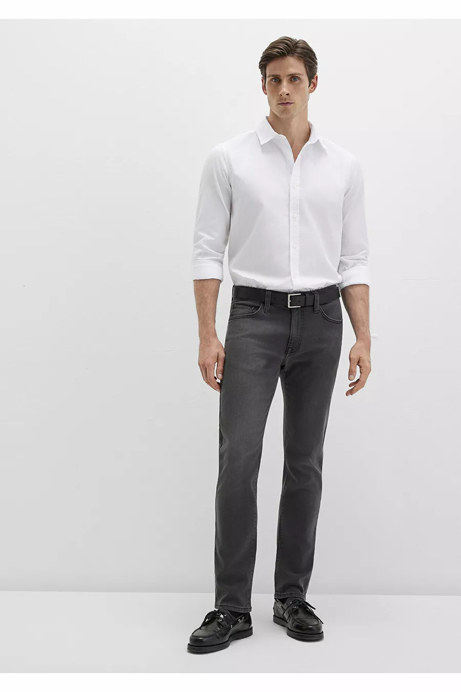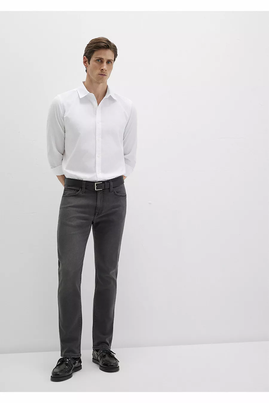 Material: Polyamid-Mischung Stoffart: Denim Hosenbein: Regular Bund: Normaler Bund Muster: Uni Farbe: Grau Taschen: 5 Taschen Produktdetails: Mit Gürtel Kollektion: Denim Futter: Ungefüttert Länge: Regular Schnitt: Gerade Anlass: Elegant Passform: Gerade Zusätzliche Eigenschaften: Keine zusätzlichen Eigenschaften Druck/Sticktechnik: Ohne Druck Gürtelzustand: Mit Gürtel Nachhaltigkeitsdetails: Nein Materialzusammensetzung: 99% Baumwolle, 1% Elasthan Pflegehinweis: T44 Herkunft: TR Boxzustand: Keine Box