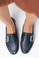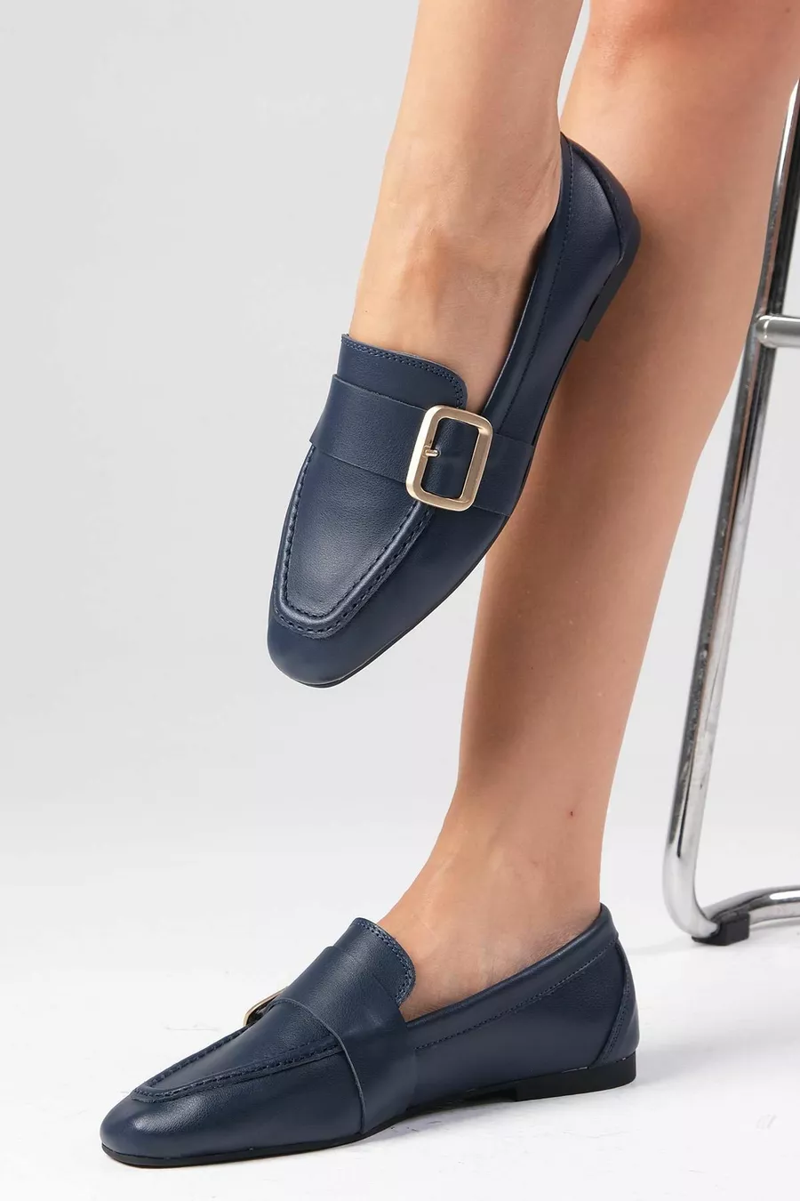 Martina Echtes Leder Marineblau Farbe Blunt Toe Damen Loafer Schuhe