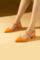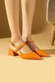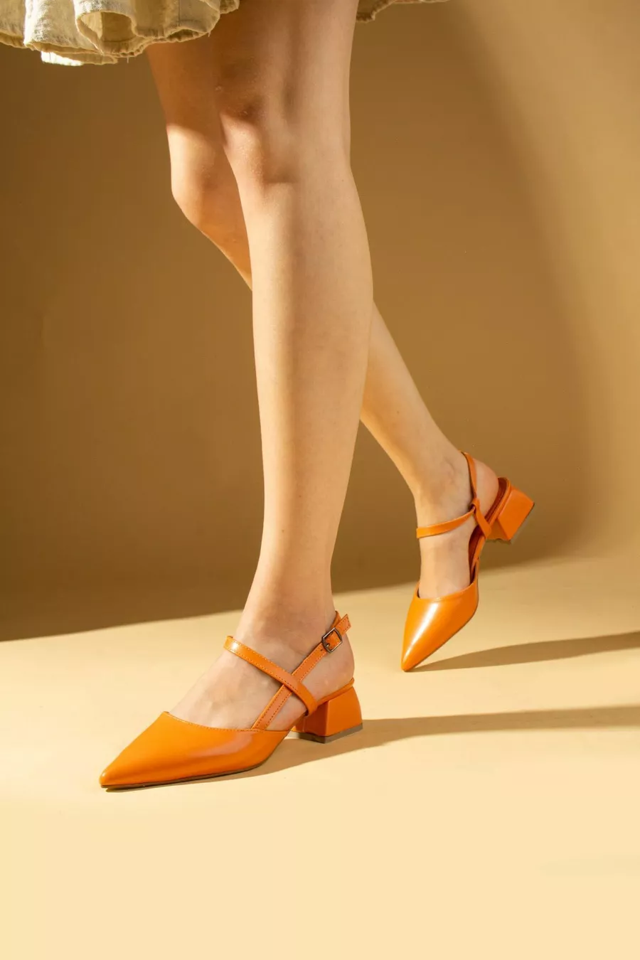 Mary Jane Orange Hard Hat mit offenem Rücken und spitzer Zehenpartie Kurze kurze Absätze für Damen