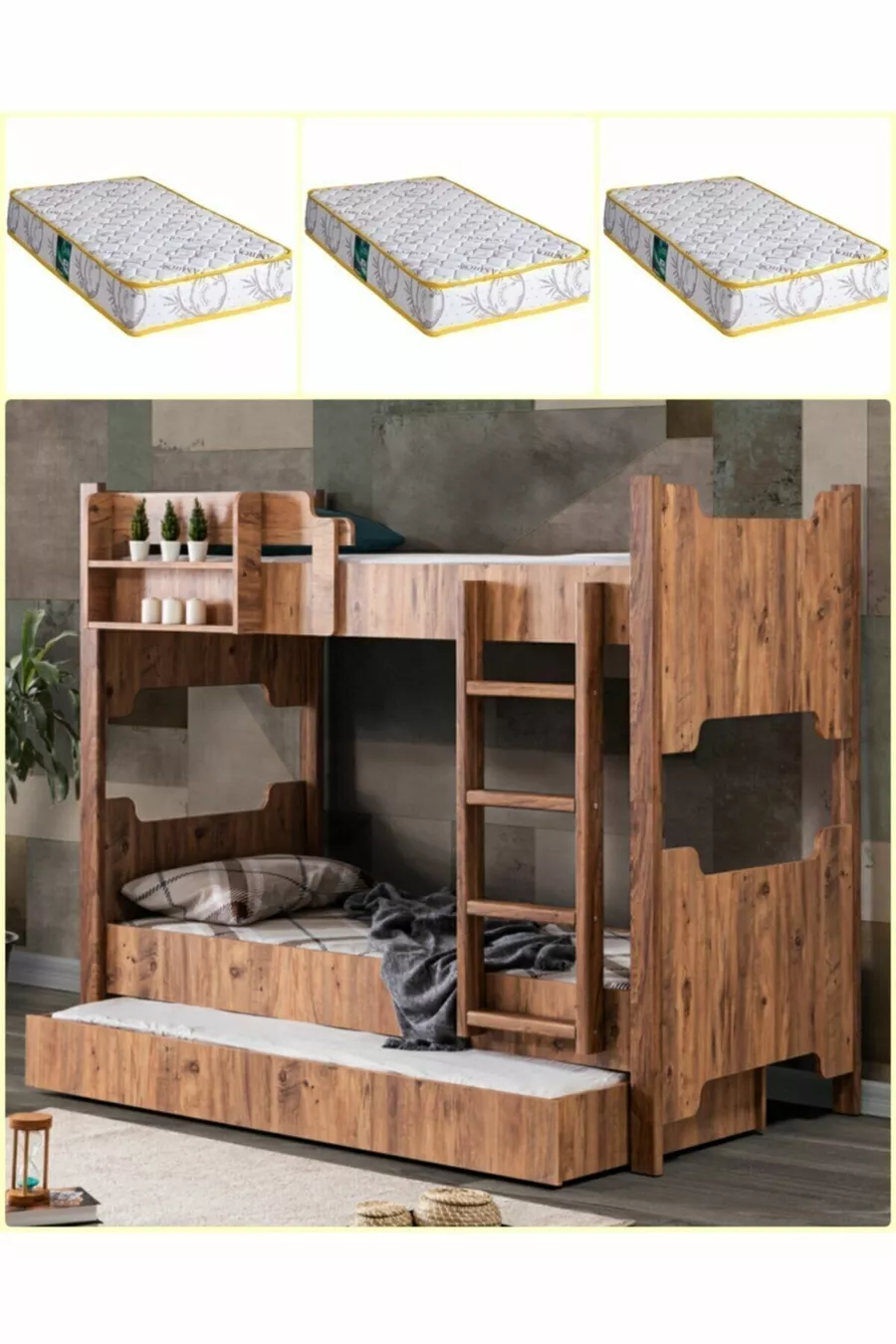 MDF-Profil-Etagenbett, Eurasien Trennbares Etagenbett mit 3 Comfort-Matratzen