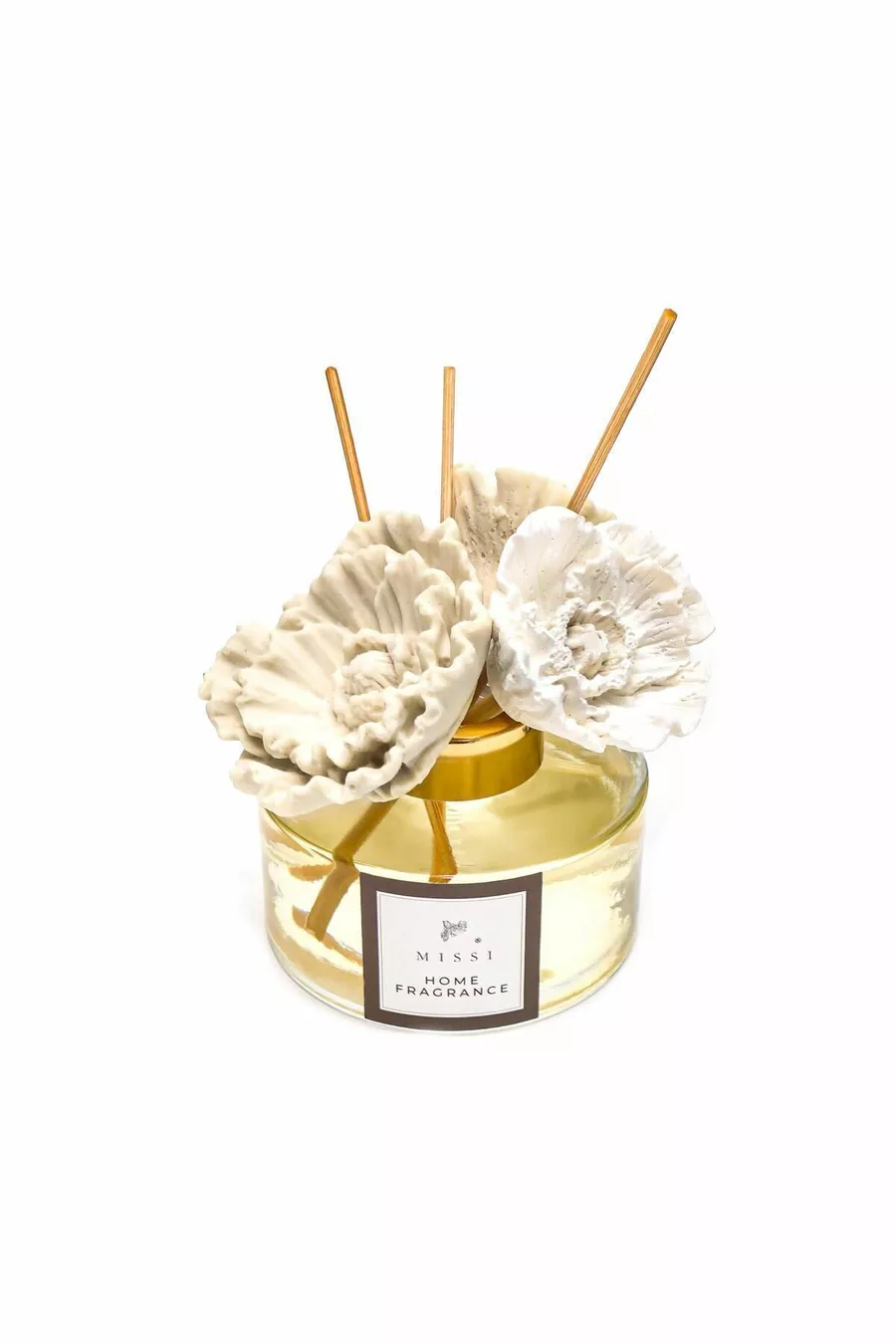 ml Schwarzes Vanille-Raumduft mit Keramikblume, Stein und Bambusstäbchen