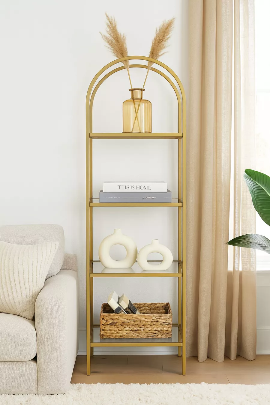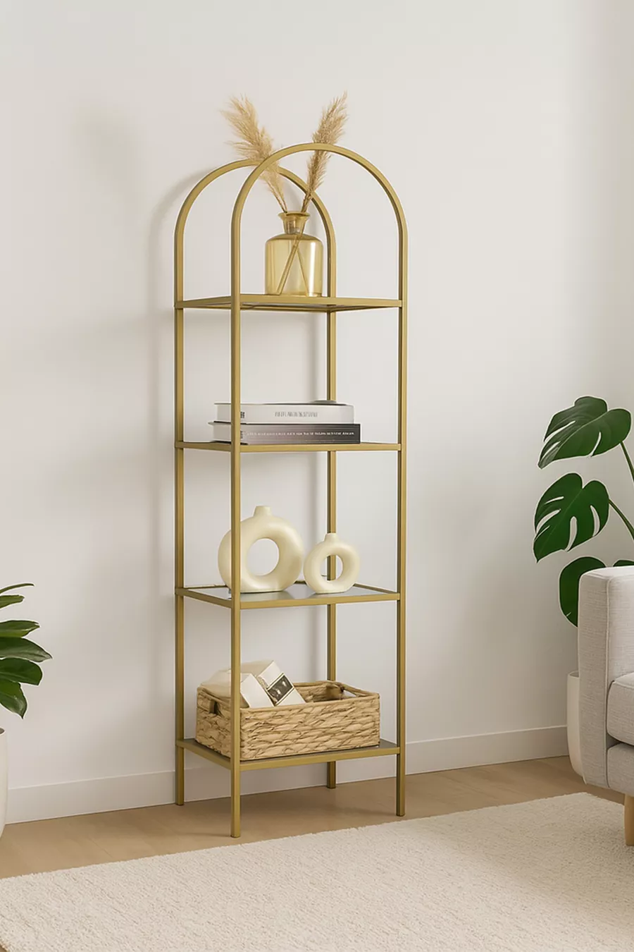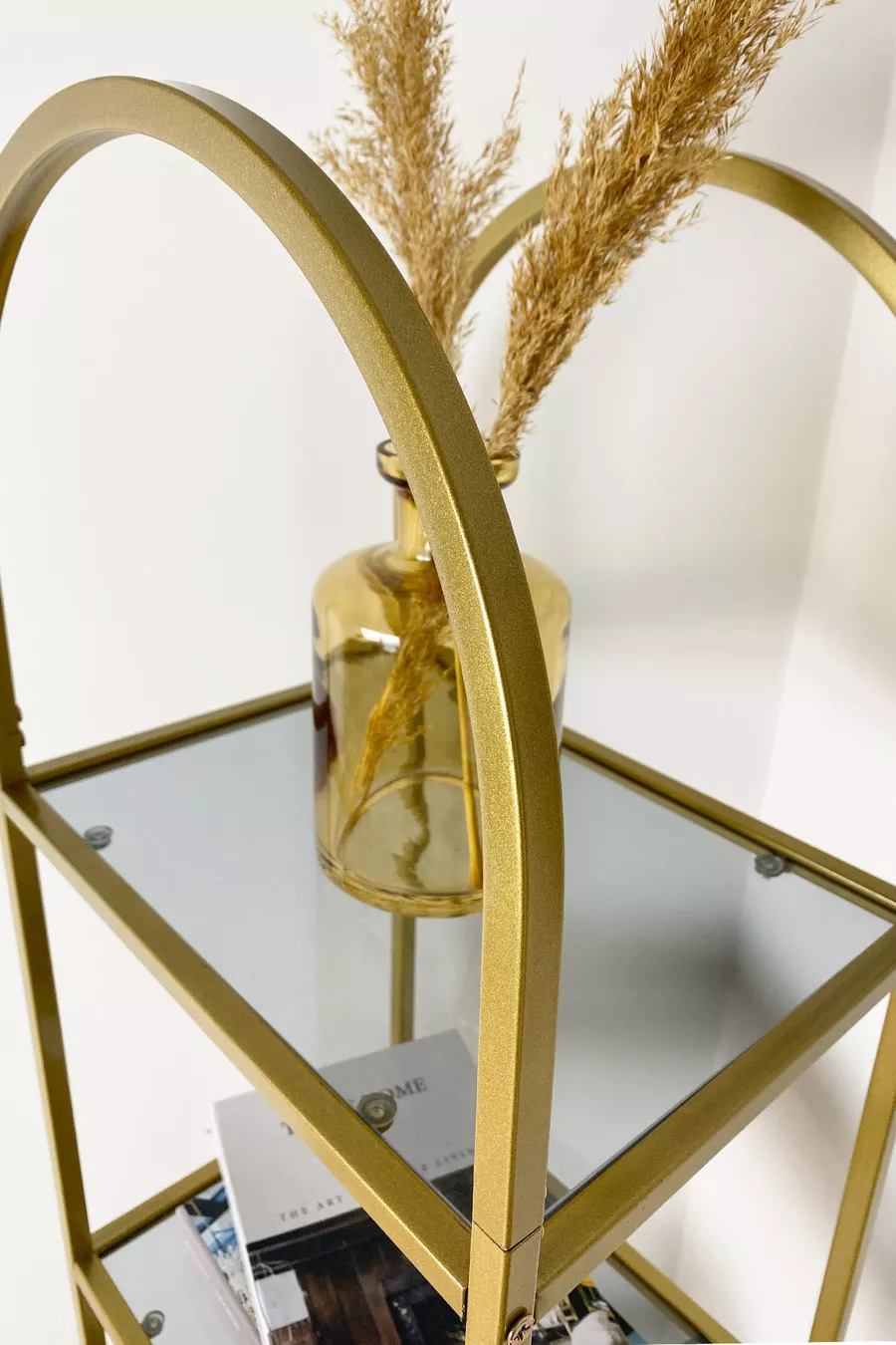 Tipp: Klassisch Material: Glas Farbe: Gold Höhe: 152 cm Breite: 40 cm Tiefe: 30 cm Anzahl der Regale: 4 Korpusmaterial: Metall Stil: Retro Thema / Stil: Retro Herkunft: TR