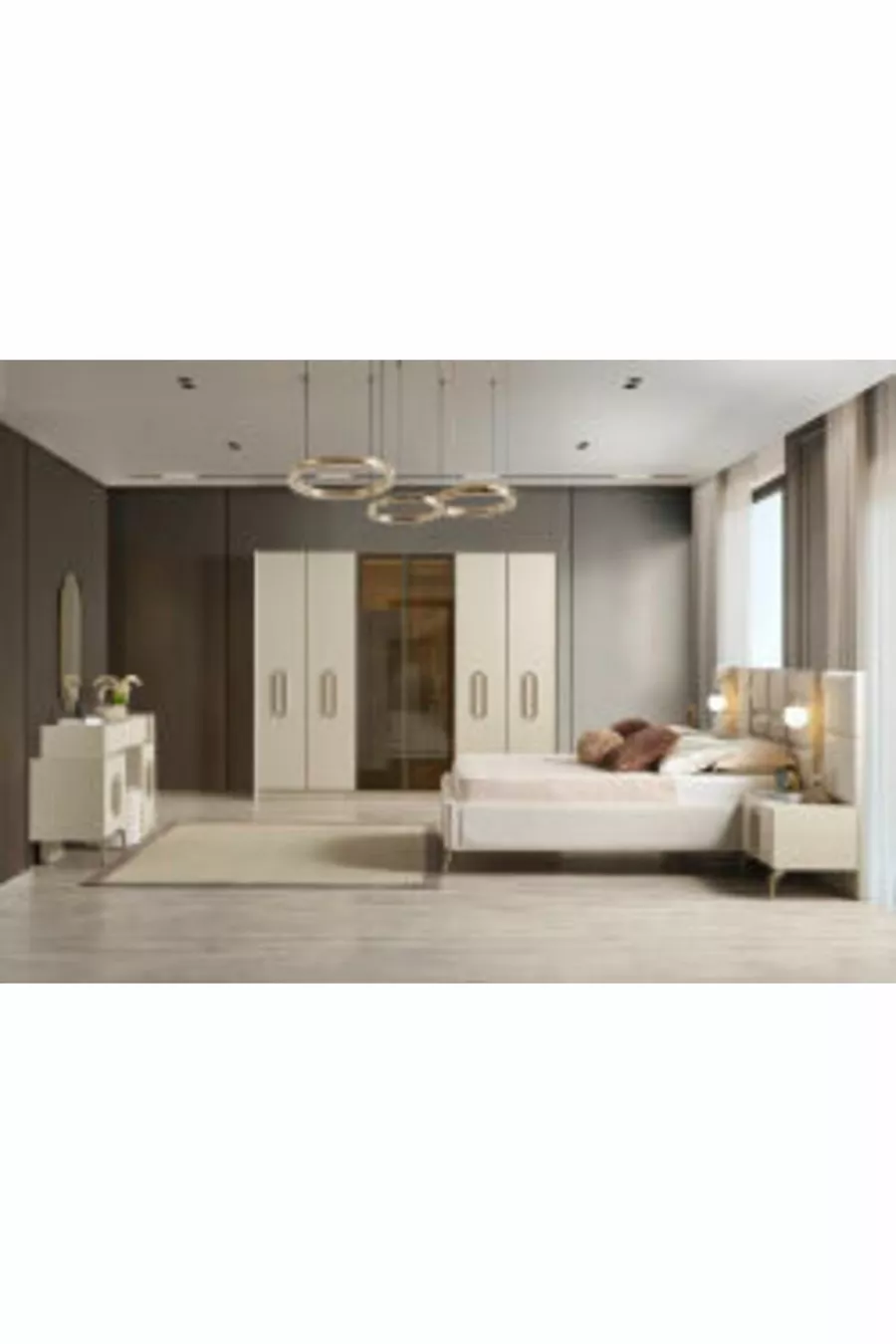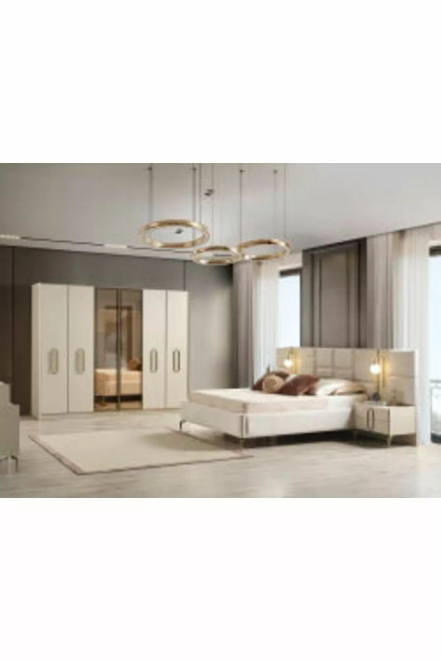 Setinhalt: Bettgestell + 2 Nachttische + Kommode + Kleiderschrank