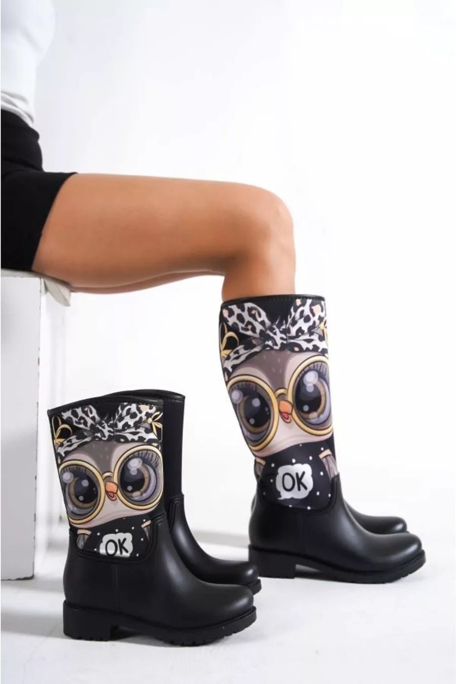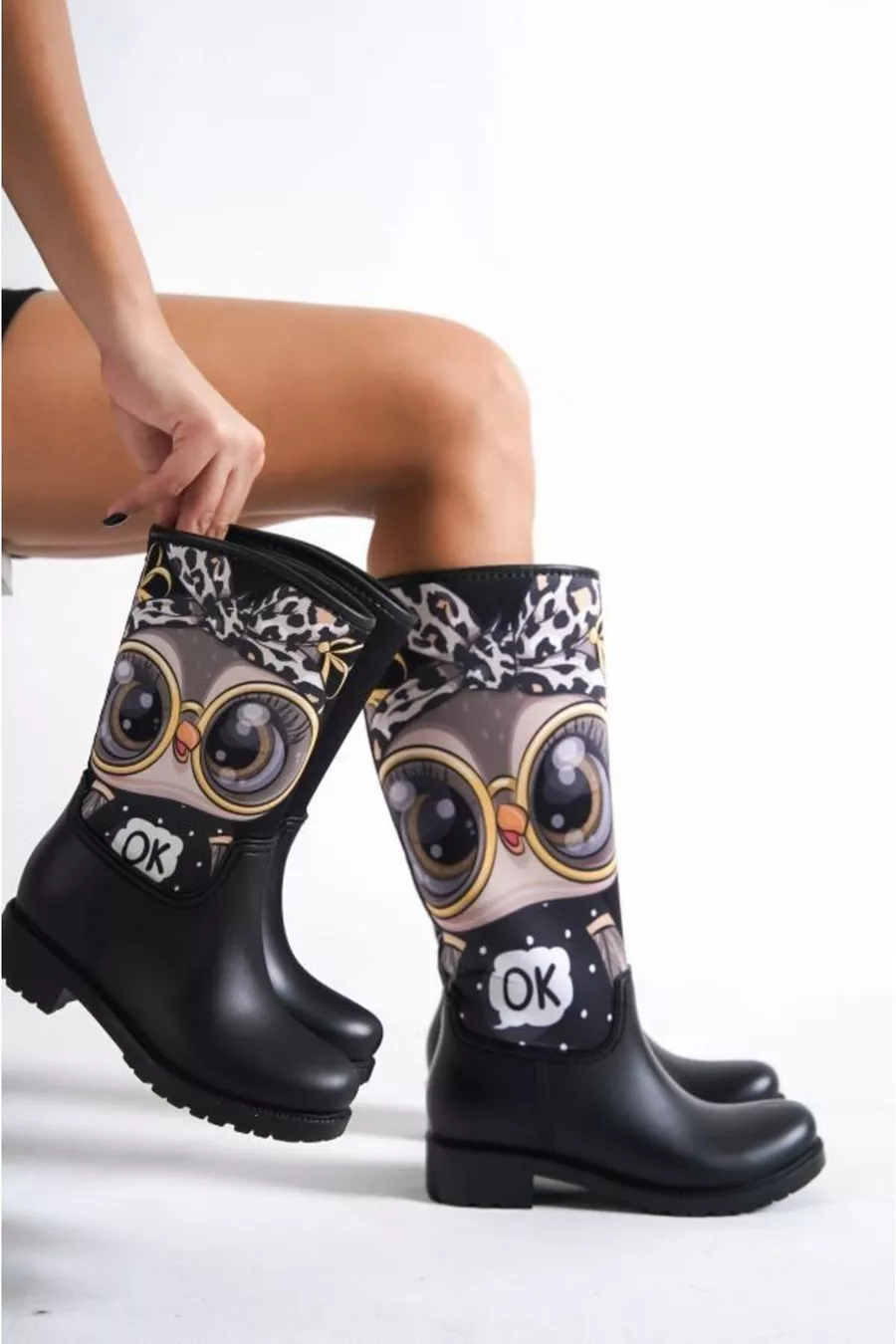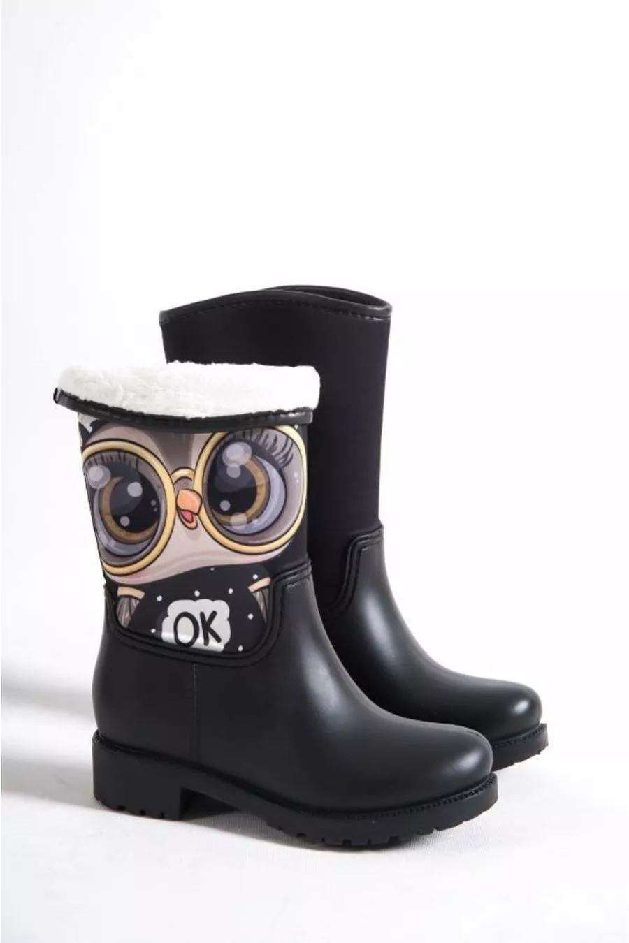 Mutter Tochter Kombination Eule bedruckt Plüsch wasserdichte Regenstiefel
