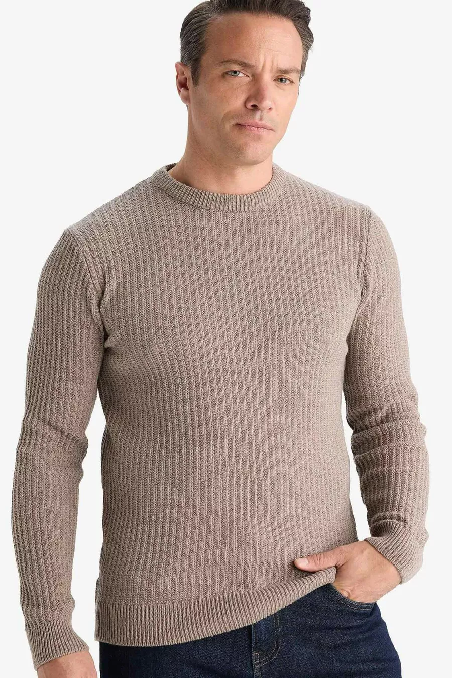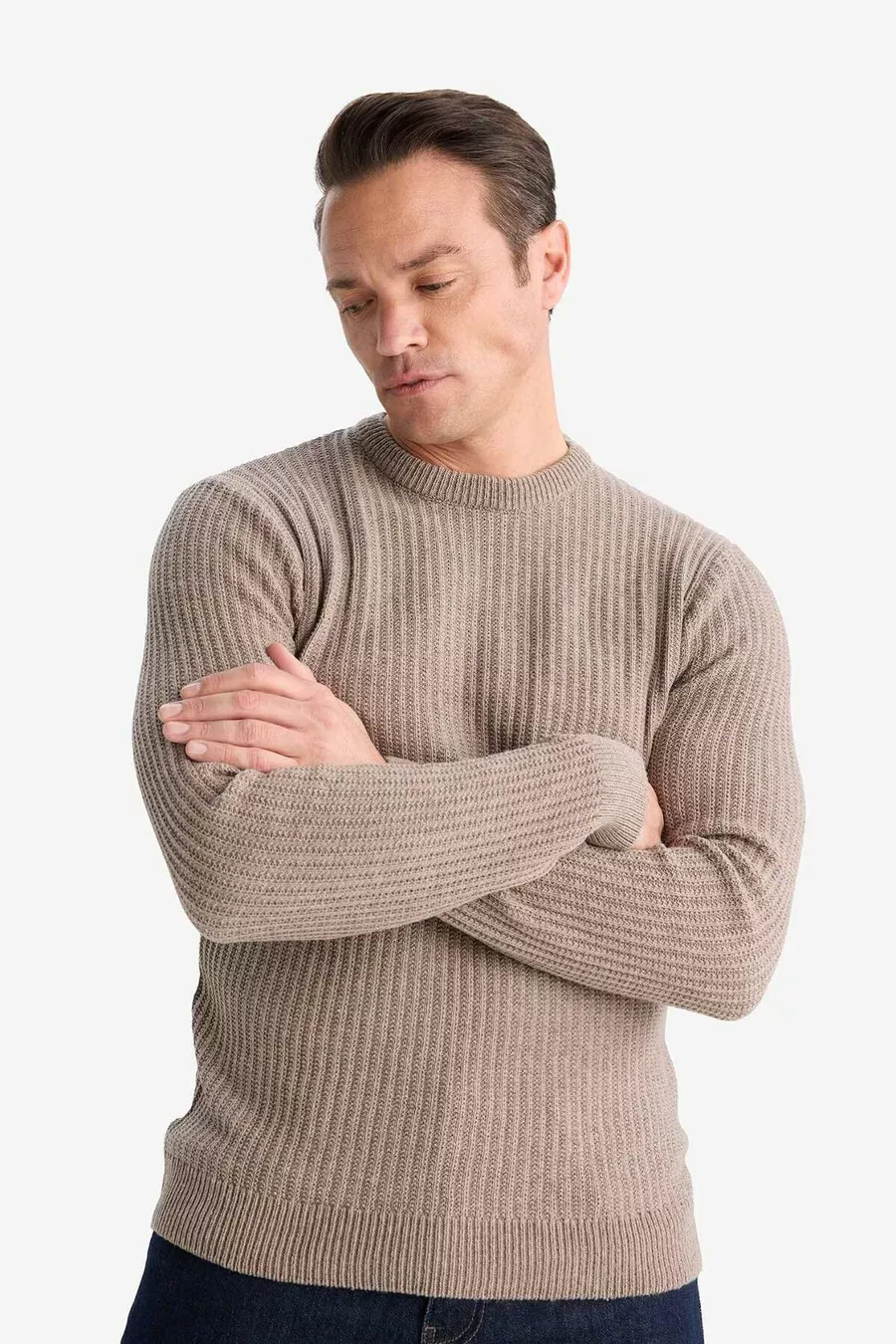 Neujahrs Standard Fit Rundhalsausschnitt Basic Strukturstrickpullover WN