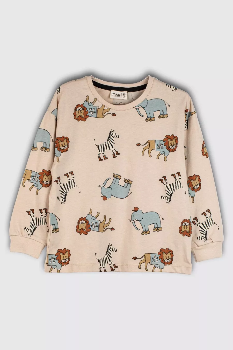 Niedlicher Tier (Löwe-Zebra-Elefant) gemusterter Jungen-Pyjama-Set