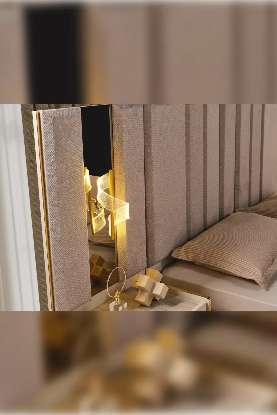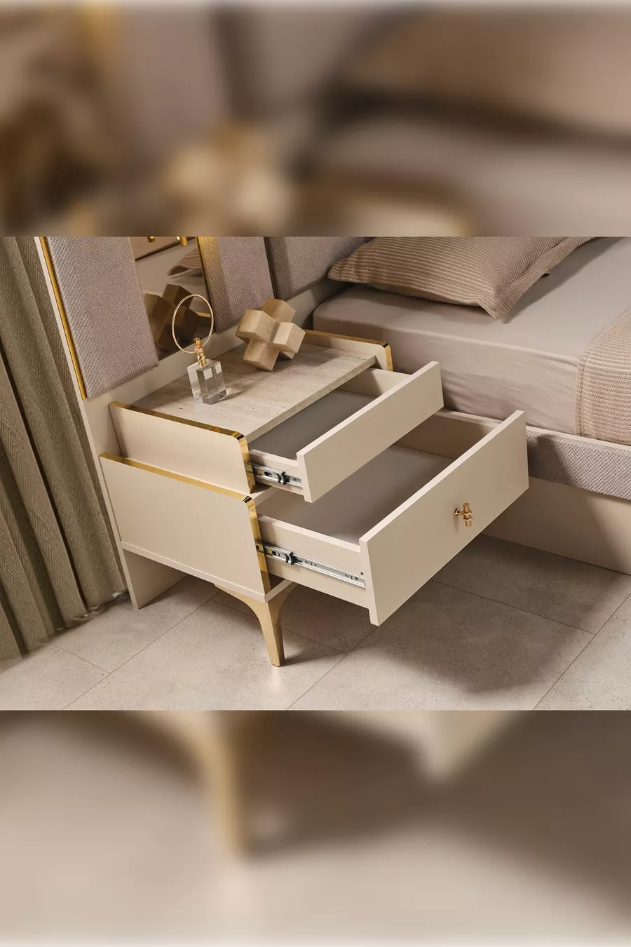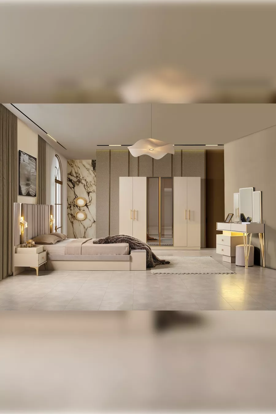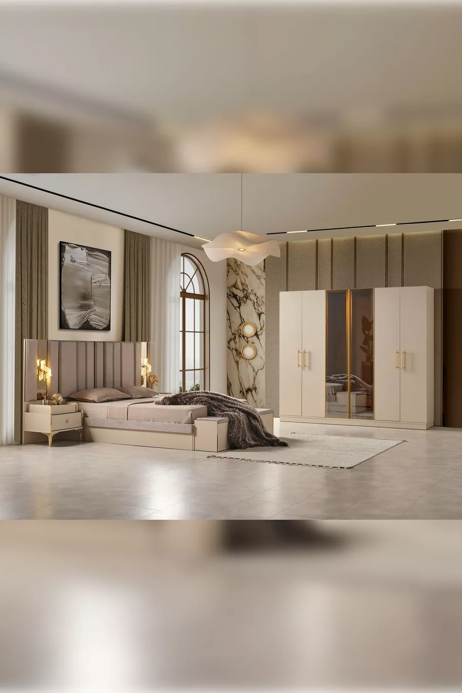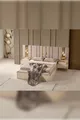 Setinhalt: Bett + 2 Nachttische + Kommode + Kleiderschrank + Spiegel
