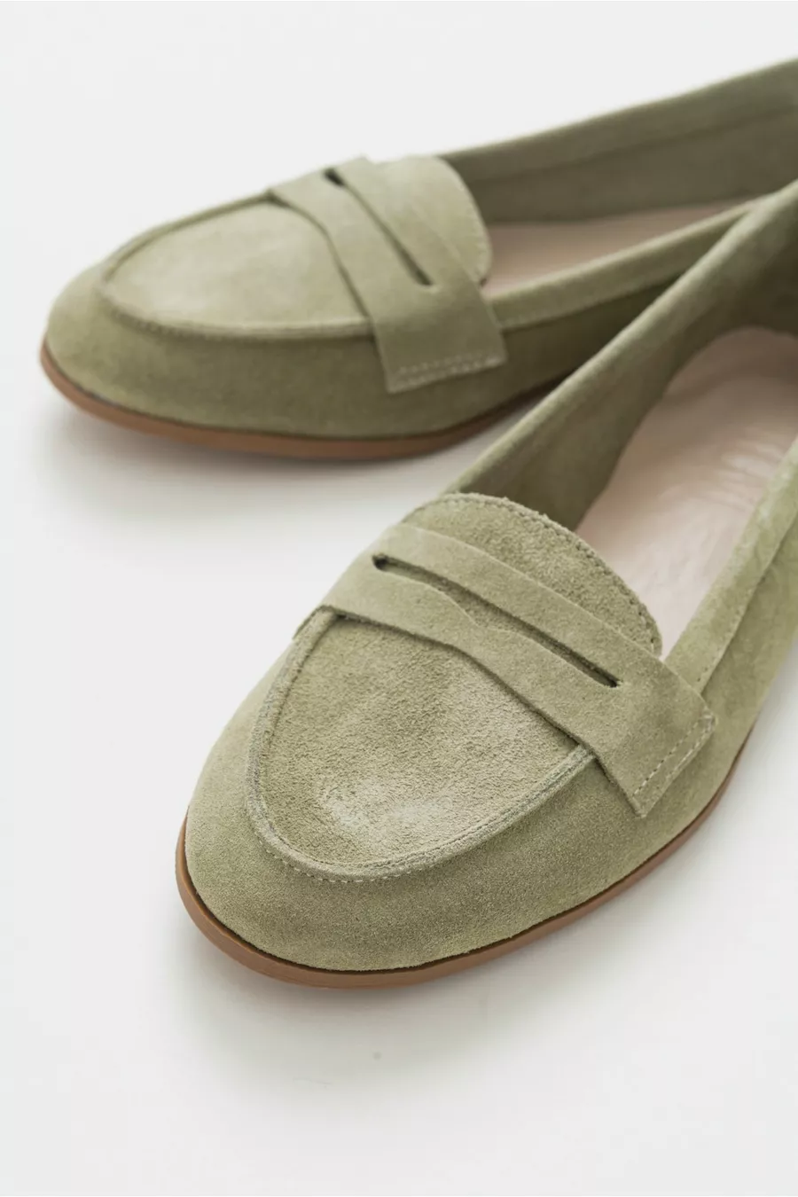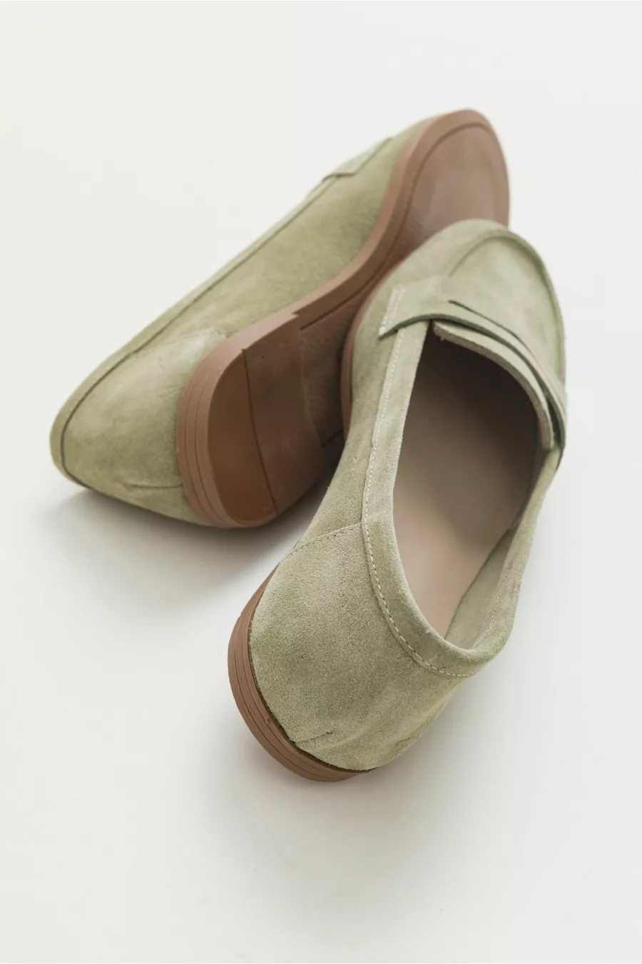 Material: Echtes Leder Futtermaterial: Echtes Leder Verschlussart: Schlupf Farbe: Grün Sohlenmaterial: Thermoplast Obermaterial: Echtes Leder Absatzhöhe: Niedriger Absatz (1-4 cm) Innensohlenmaterial: Echtes Leder Zusätzliche Merkmale: Keine zusätzlichen Merkmale Nachhaltigkeitsdetails: Nein Persona: Cool & Comfort Absatztyp: Flacher Absatz Materialzusammensetzung: 100% Leder Einsatzbereich: Casual/Alltag Waschanleitung: Typ 4 Muster: Uni Stoffart: Nicht angegeben Kollektion: Basic Herkunft: TR Verpackungszustand: Mit Schachtel Saison: Frühling / Herbst Außenmaterial: Echtes Leder Spitzentyp: Rund