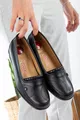 Kollektion: Kleidung für die Verschleierung Besonderes Merkmal: Orthopädische Sohle Material: Künstliches Leder Futtermaterial: Echtes Leder Farbe: Schwarz Sohlenmaterial: Thermoplast Obermaterial: Echtes Leder Absatzhöhe: Niedriger Absatz (1-4 cm) Innenmaterial: Echtes Leder Verschlussart: Ohne Schnürung Zielgruppe: Cool & Comfort Nachhaltigkeitsdetail: Nein Absatztyp: Flacher Absatz Materialzusammensetzung: Innen Leder, außen Kunstleder Waschanleitung: Nein Muster: Uni Gelegenheit: Freizeit Außenmaterial: Echtes Leder