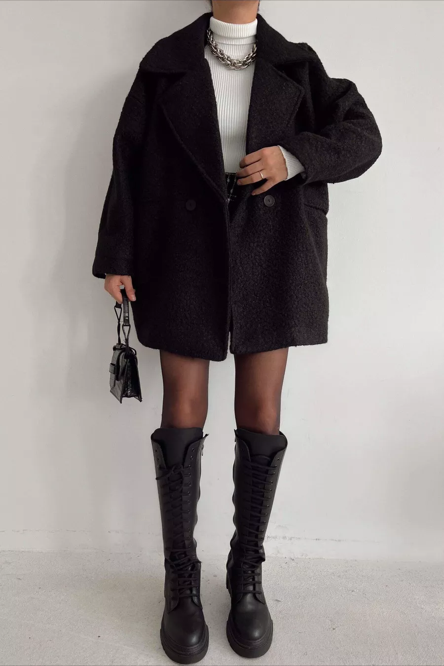 Schnitt: Oversize Stoffart: Gewebe Farbe: Schwarz Kragenart: Hemdkragen Muster: Uni Produktdetails: Gefüttert Produkttyp: Uni Tasche: Doppeltaschen Futterzustand: Gefüttert Länge: Kurz Silhouette: Biker Anlass: Tag / Nacht Ärmellänge: Lang Ärmelform: Standardärmel Zusatzfunktion: Keine Zusatzfunktion Fülltechnik: Ungefüllt Persona: Fashion Forward Verschlussart: Knöpfe Druck-/Sticktechnik: Ohne Druck Füllmaterial: Polyester Gürtel-/Taillenzustand: Ohne Gürtel Material: Elastan Materialzusammensetzung: 80% Viskose, 15% Polyester, 5% Elastan Webart: Kaschmirstoff Waschanleitung: Typ 2 Saison: Winter Boxzustand: Keine Box Packungsinhalt: Einzelstück