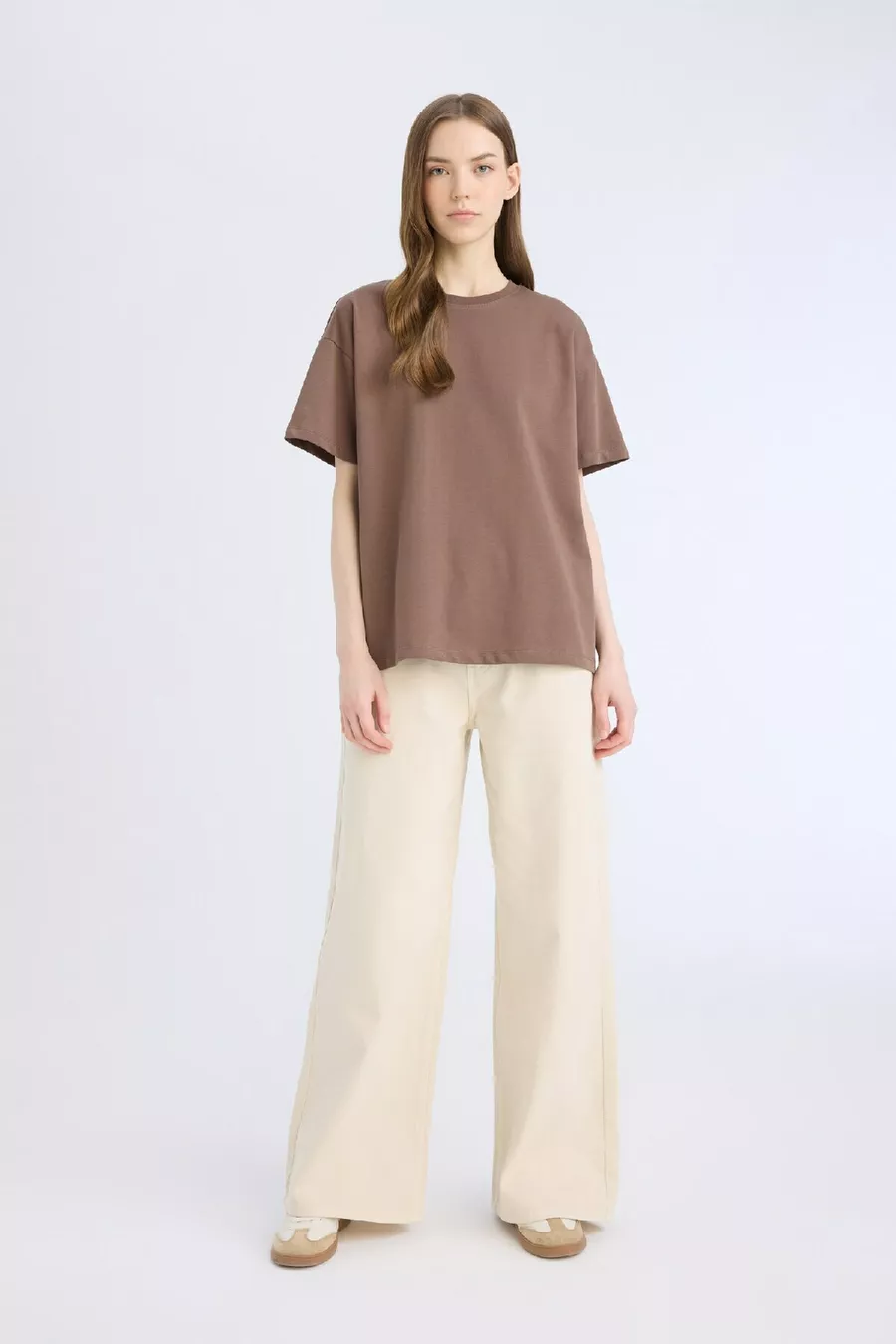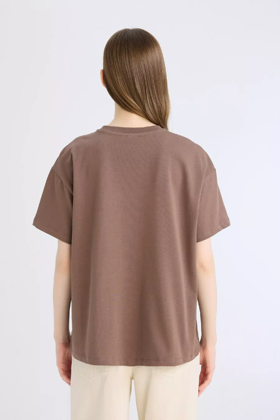 Oversize Weite Passform Rundhals Basic Einfarbig Dickes Gewebe Kurzarm Braun T-Shirt SP
