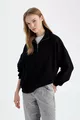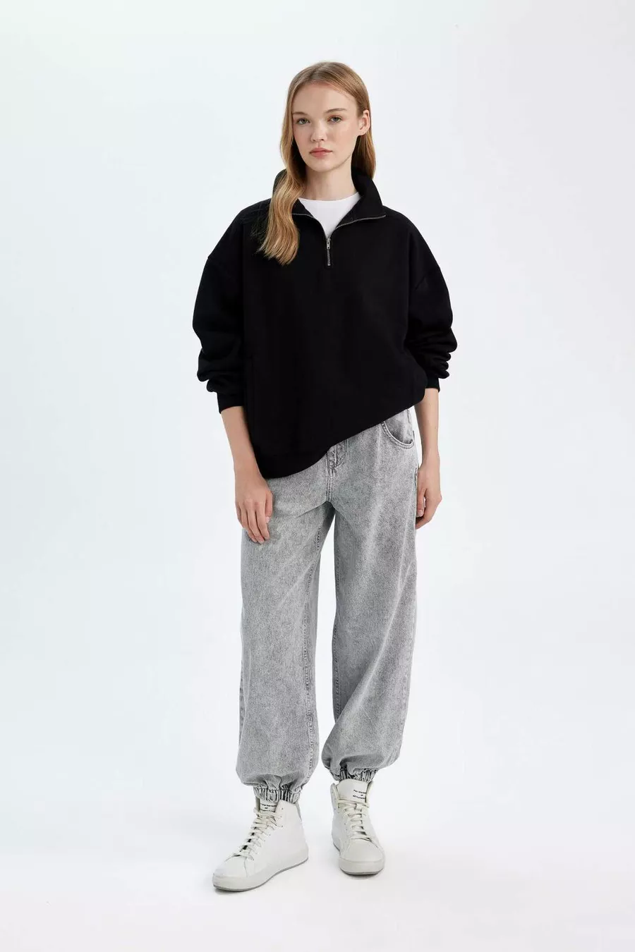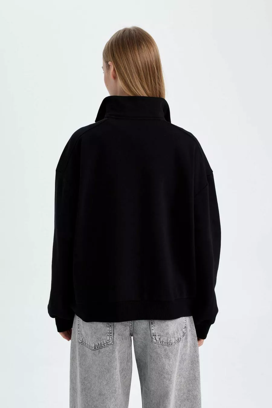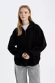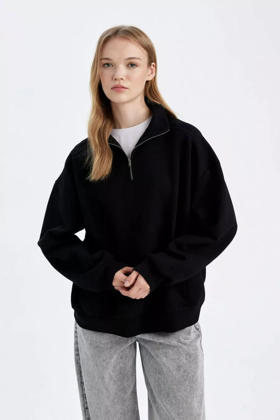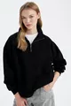 Oversize Weite Passform Reißverschluss Stehkragen Taschen Basic Einfarbig Dickes Schwarzes Sweatshirt WN