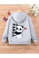 Panda Baumwoll Kinder Reißverschluss Strickjacke - Grau Bedruckt Mädchen Jungen Kinder Winter Kapuzenjacke
