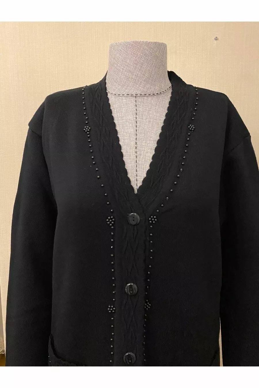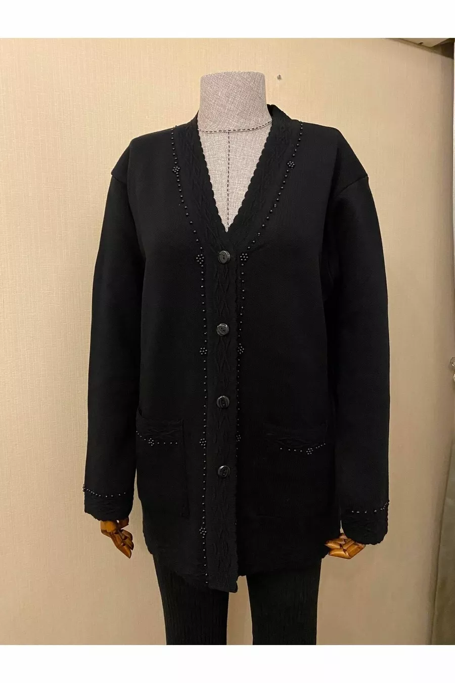 Material: Gewebe Ärmellänge: Lange Ärmel Muster: Gemustert Schnitt: Regular Farbe: Schwarz Stoffart: Strick Kragenart: V-Ausschnitt Produktdetails: Mit Perlen Produkttyp: Uni Tasche: Zwei Taschen Ärmellänge: Lang Kollektion: Basic Dicke: Mittel Länge: Regular Silhouette: Basic Gelegenheit: Alltag Zusatzfunktion: Keine Zusatzfunktion vorhanden Druck/Stickerei Queenmadamní: Ohne Druck Verschlussart: Knopfleiste Anzahl der Teile: 1 Persona: Cool & Comfort Nachhaltigkeitsdetails: Nein Gewebeart: Strick Gürtel/Bindegurt: Ohne Gürtel Waschanleitung: Typ 1 Herkunft: TR Packungszustand: Keine Verpackung