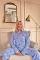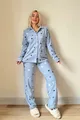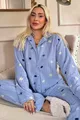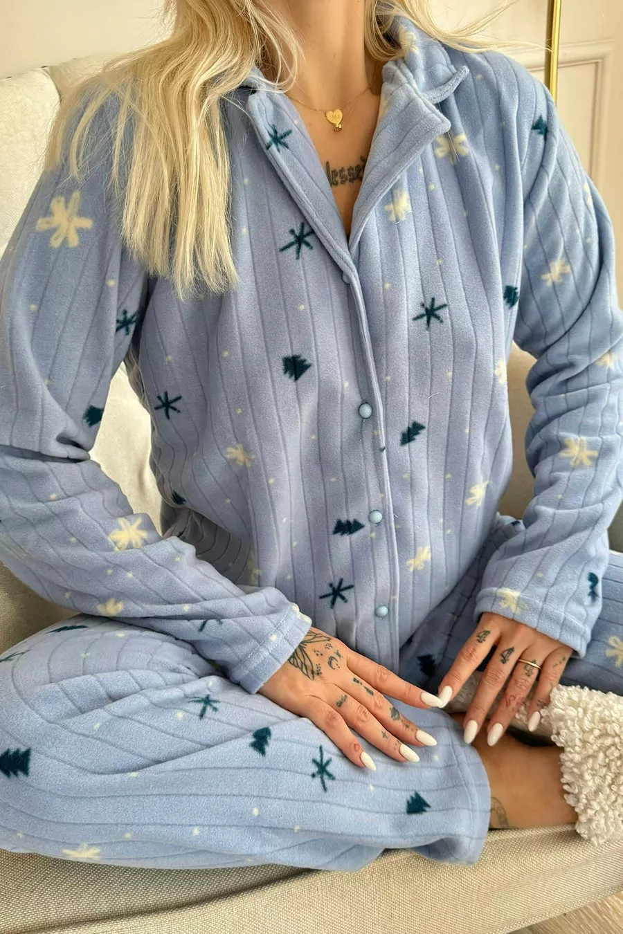 Plüsch-Fleece-Pyjama-Set mit vorderer Knopfleiste und blauem Kiefernmuster