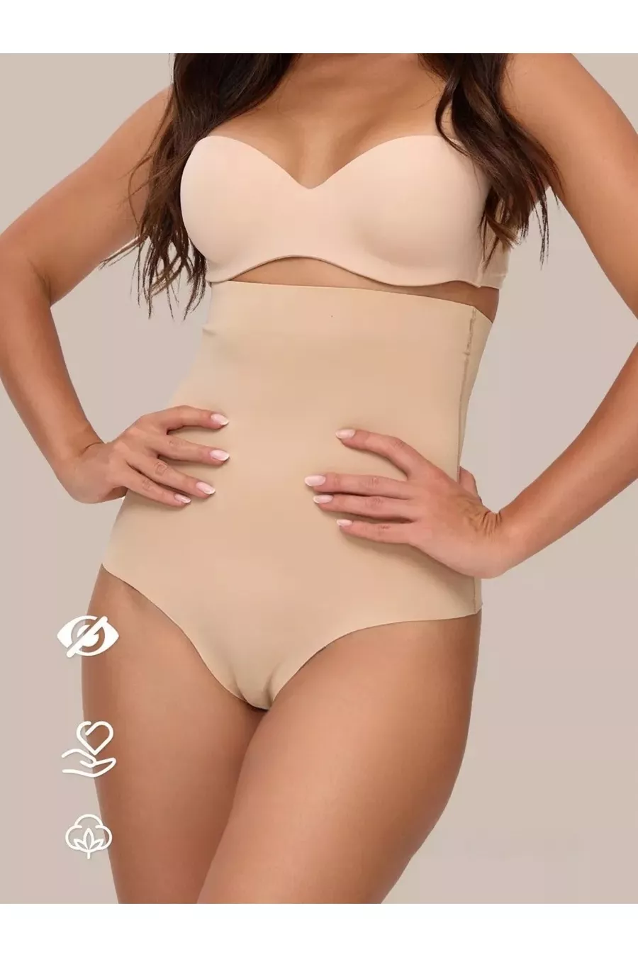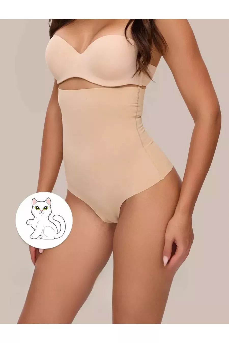 Privates Modell Laserzuschnitt Taille Hüfte Formender Dünner Hoher Bund Slip Rutschfest Mit Silikon Hautfarbe