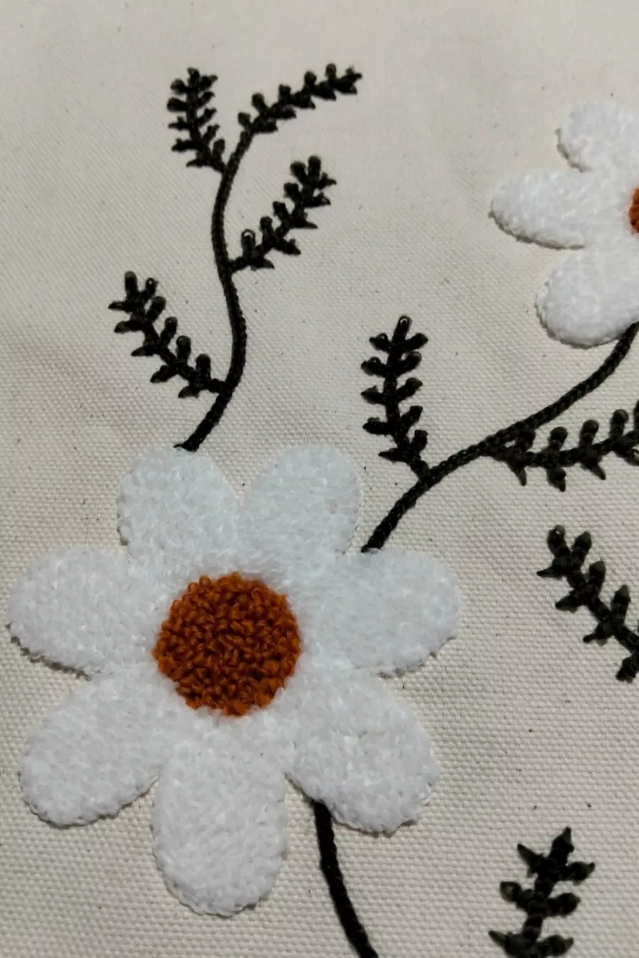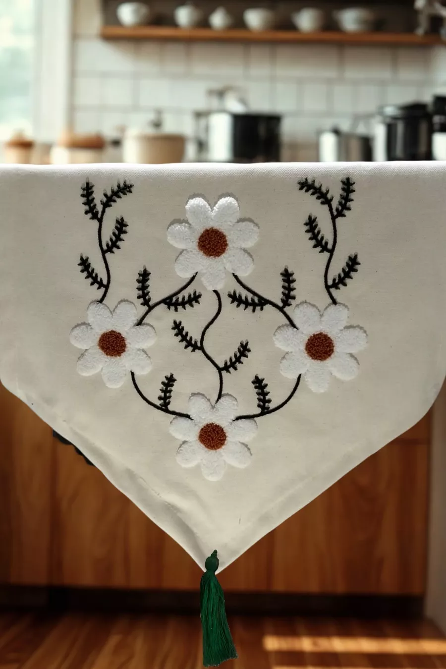 Materialbestandteil: Leinen, Stanzstickerei, Quaste