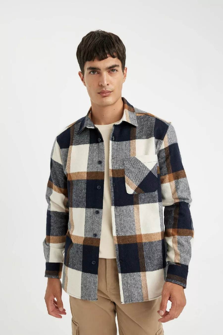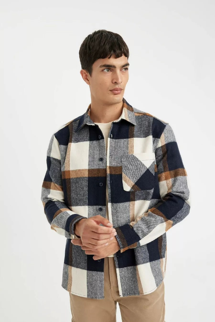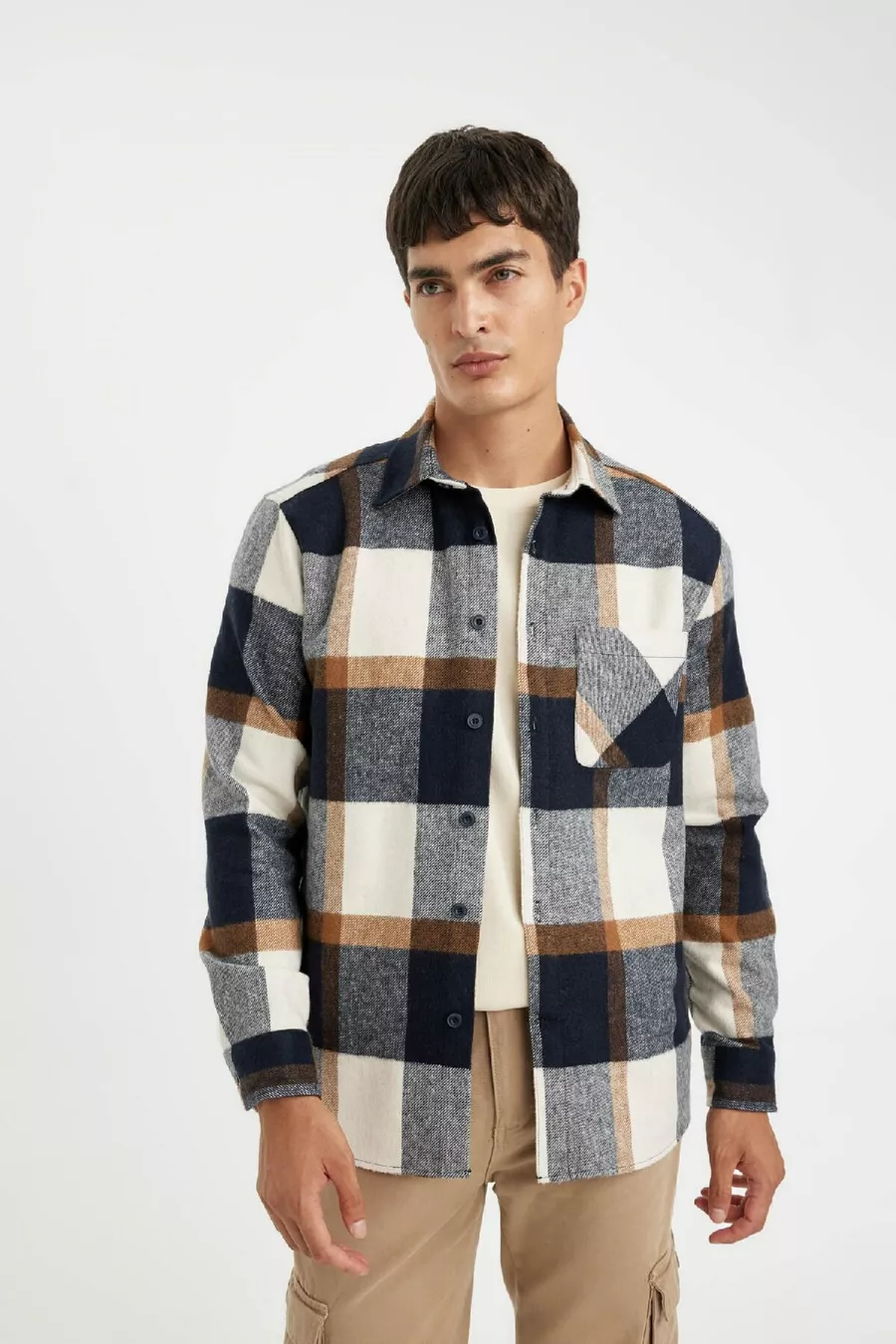 Muster: Gewebt Schnitt: Regular Kragenart: Polokragen Stoffart: Gewebt Ärmelform: Standardärmel Farbe: Dunkelblau Material: Acryl Verschlussart: Knopfleiste Tasche: Mit Tasche Ärmellänge: Lang Länge: Regular Anlass: Freizeit/Täglich Silhouette: Basic Gewebetyp: Flanell Druck-/Sticktechnik: Ohne Druck Nachhaltigkeitsdetail: Nein Gürtel-/Taillenstatus: Ohne Gürtel Materialzusammensetzung: 44% Baumwolle, 26% Polyester, 26% Acryl, 4% Viskose Waschanleitung: Typ 1 Herkunft: TR Verpackungszustand: Keine Box Packungsinhalt: Einzelstück