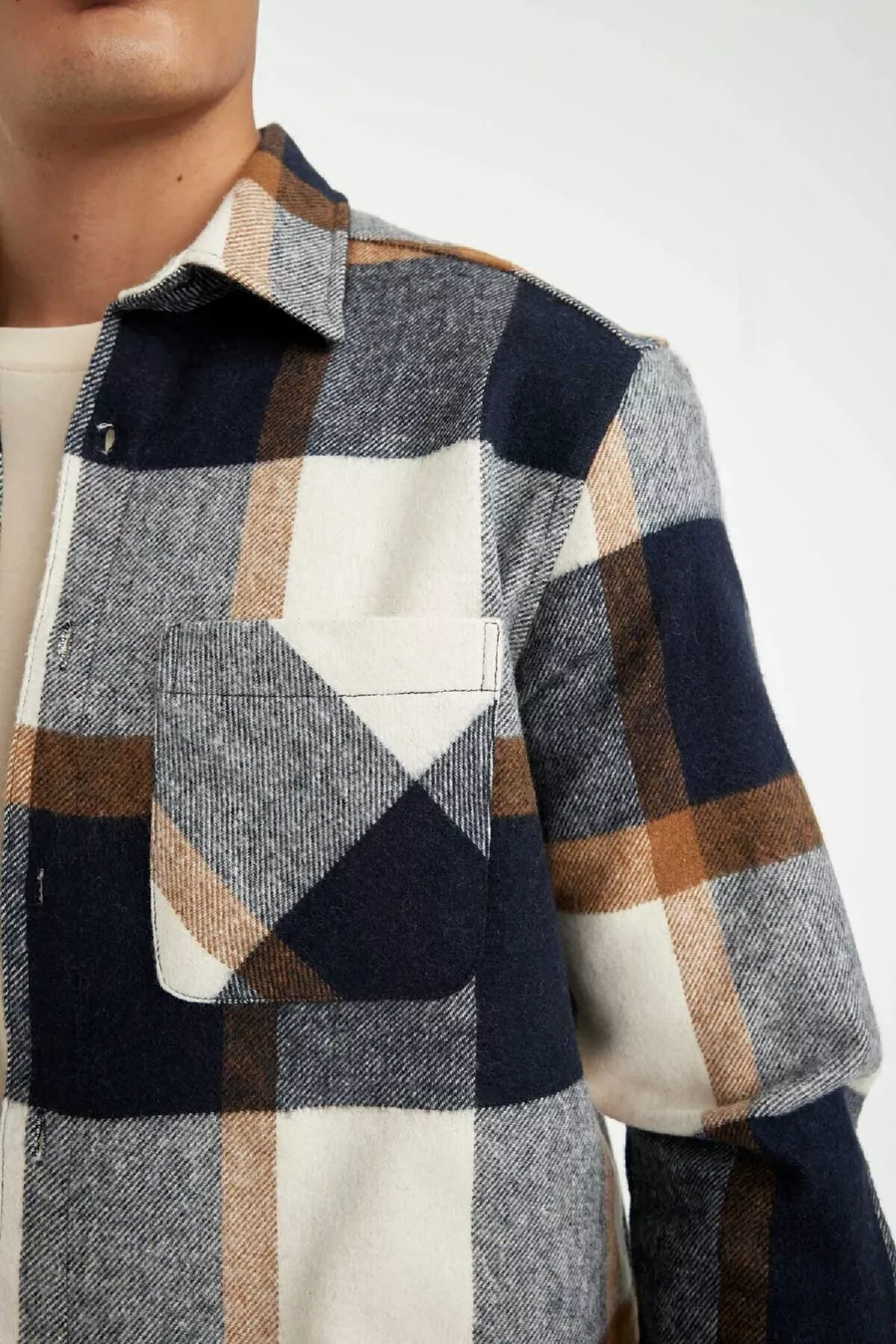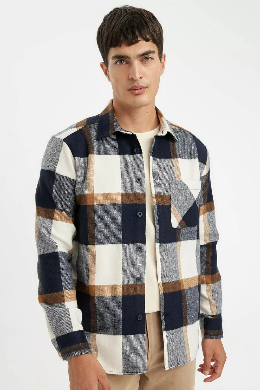 Regular Fit Kariertes Flanellhemd mit langen Ärmeln au