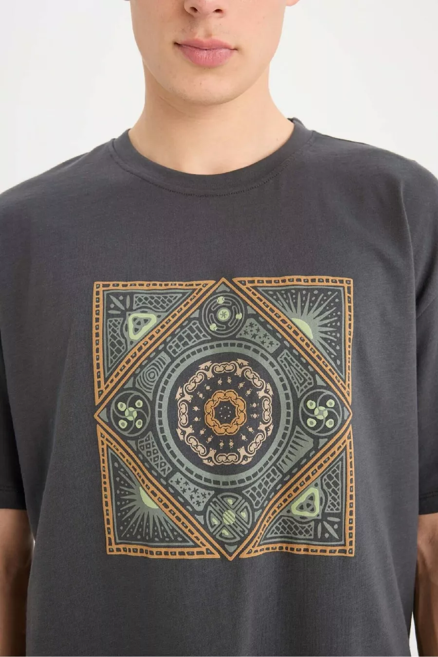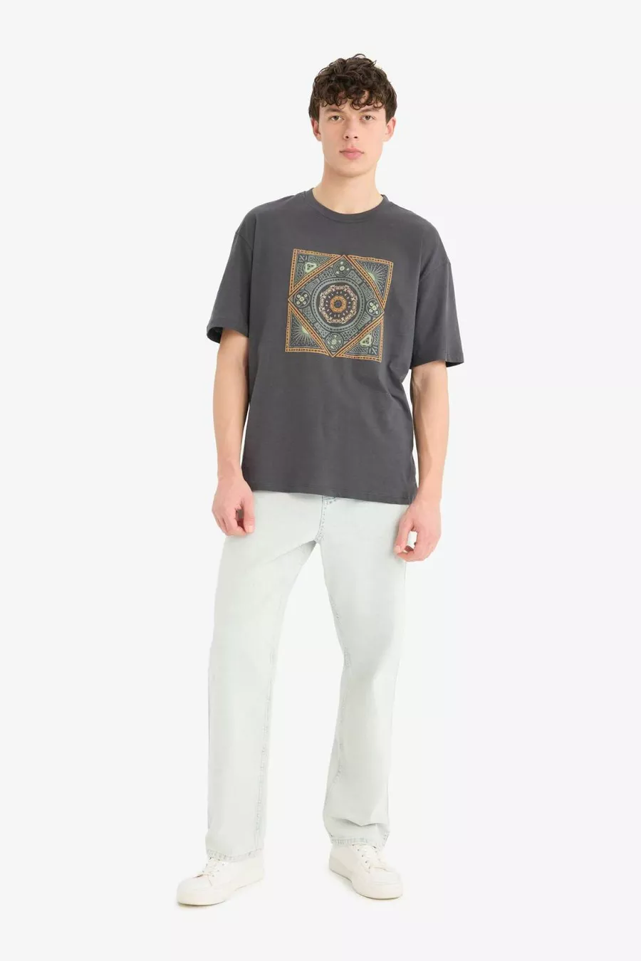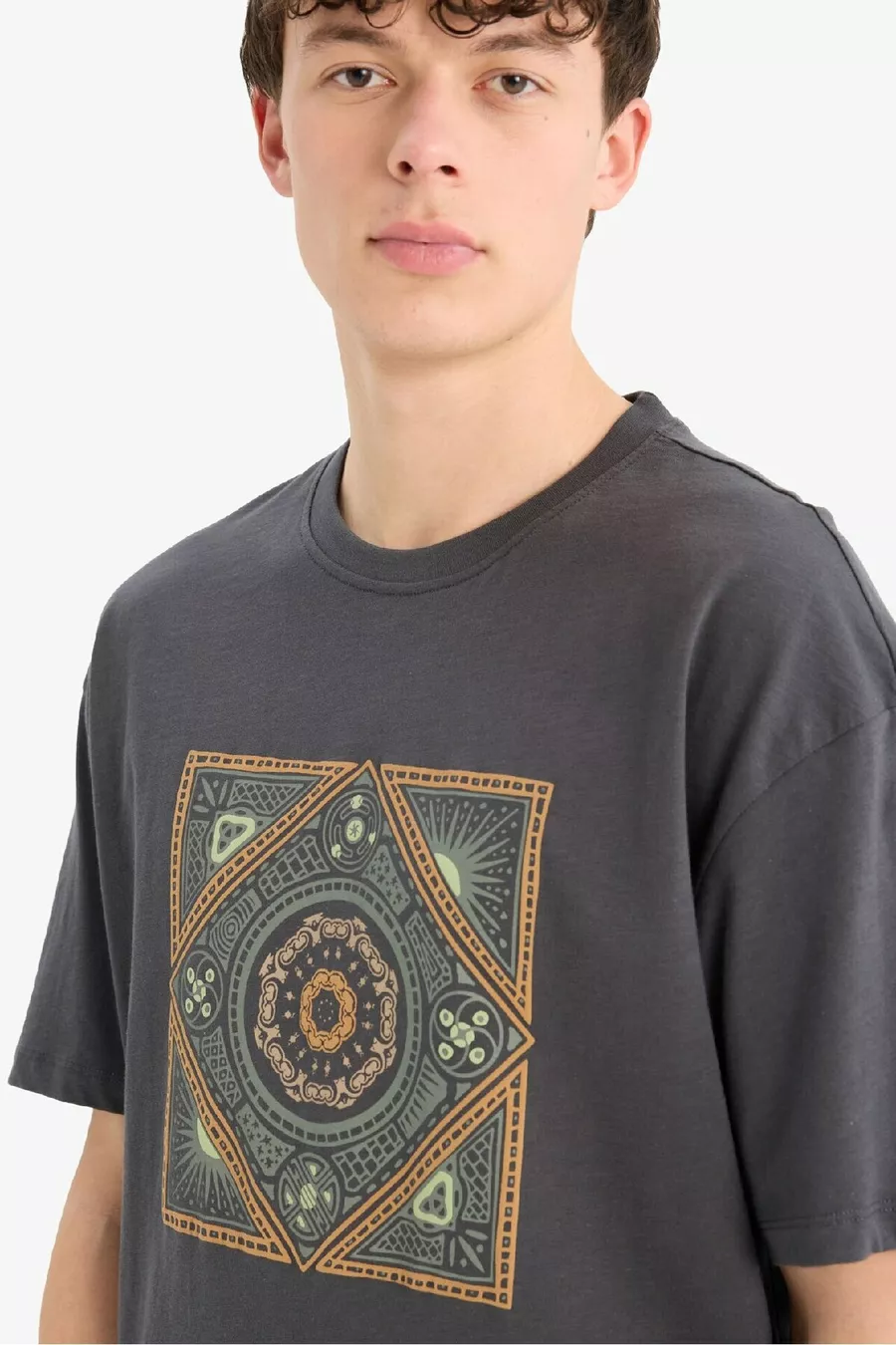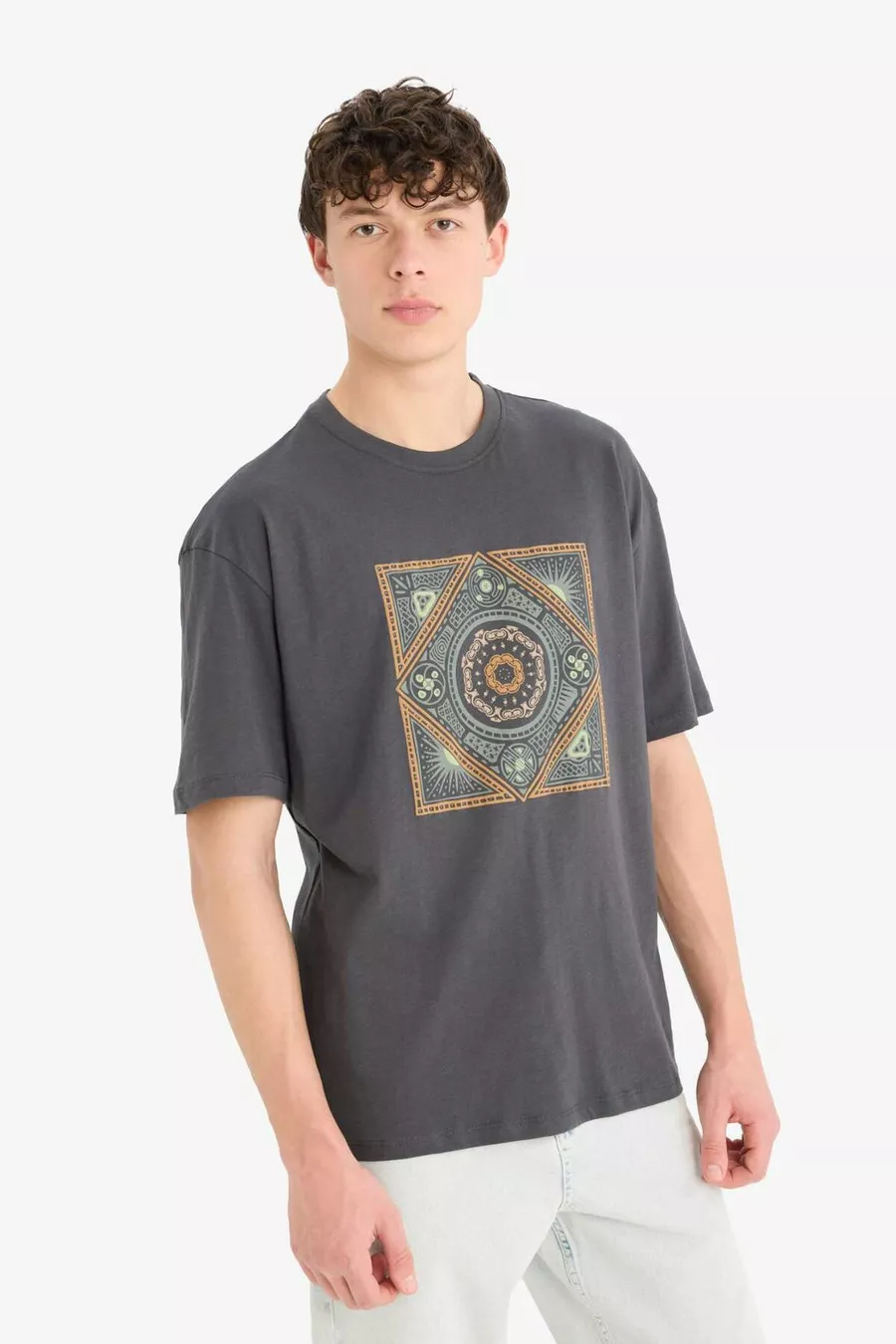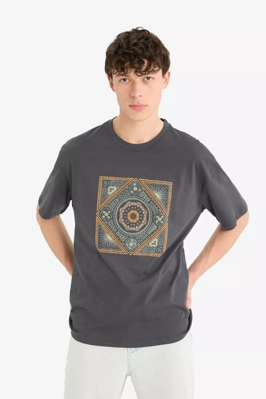 Relax Fit Rundhals T-Shirt mit Aufdruck, kurze Ärmel, % Baumwolle SM