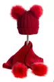 Rotes Set aus Schal und Mütze mit Doppelbommel