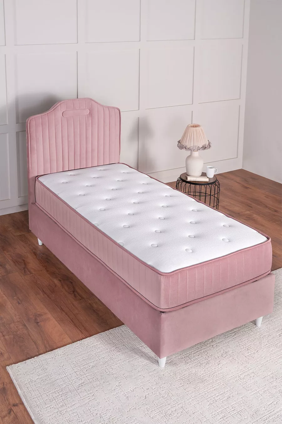 Größe: Einzelbett Material: Stoff Garantiezeit: 2 Jahre Set Typ: Bettgestell + Kopfteil + Matratze Farbe: Rosa Stil: Modern Thema / Stil: Modern Herkunft: TR Eigenschaft: Waschbar