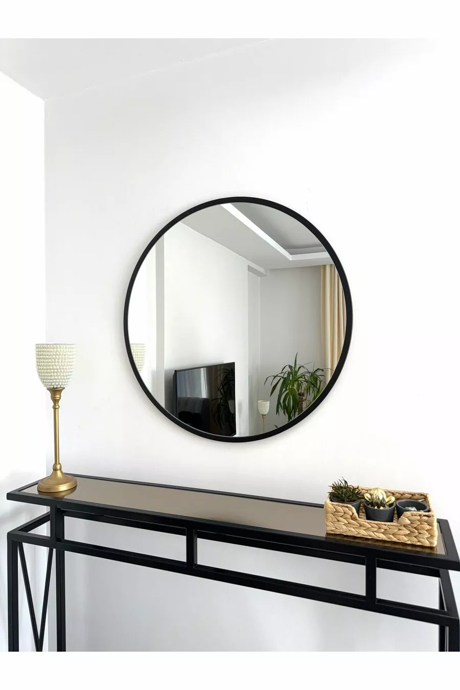 Material: Metall Farbe: Schwarz Größe/Abmessung: 70 x 70 Form: Rund Art: Schminkspiegel Eigenschaft: Rund