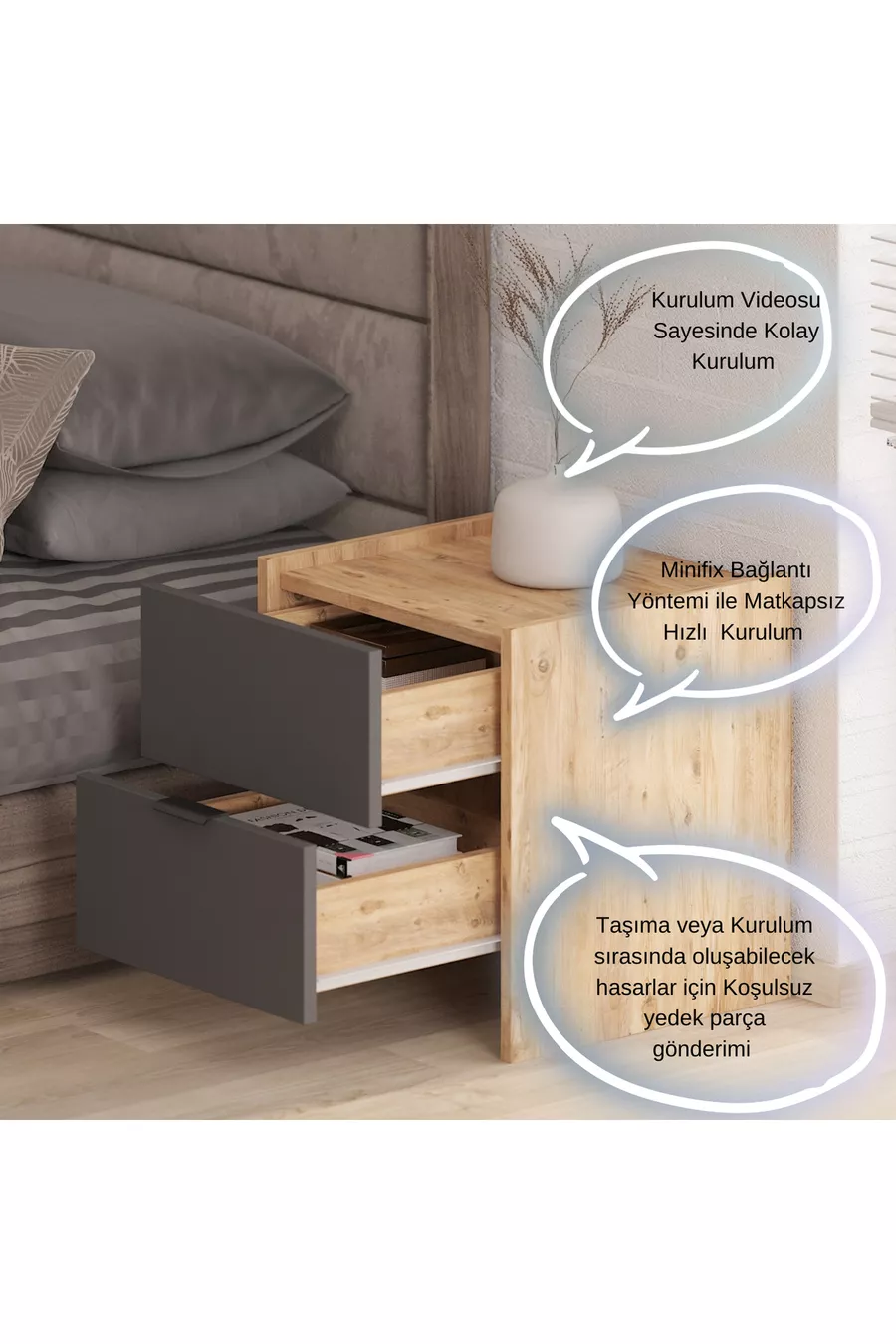 Material: Spanplatte Farbe: Braun Garantiezeit: 2 Jahre Anzahl der Schubladen: 2 Höhe: 52 cm Breite: Nicht angegeben Tiefe: 45 cm Stil: Modern Thema / Stil: Modern Herkunft: TR Eigenschaft: Andere