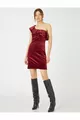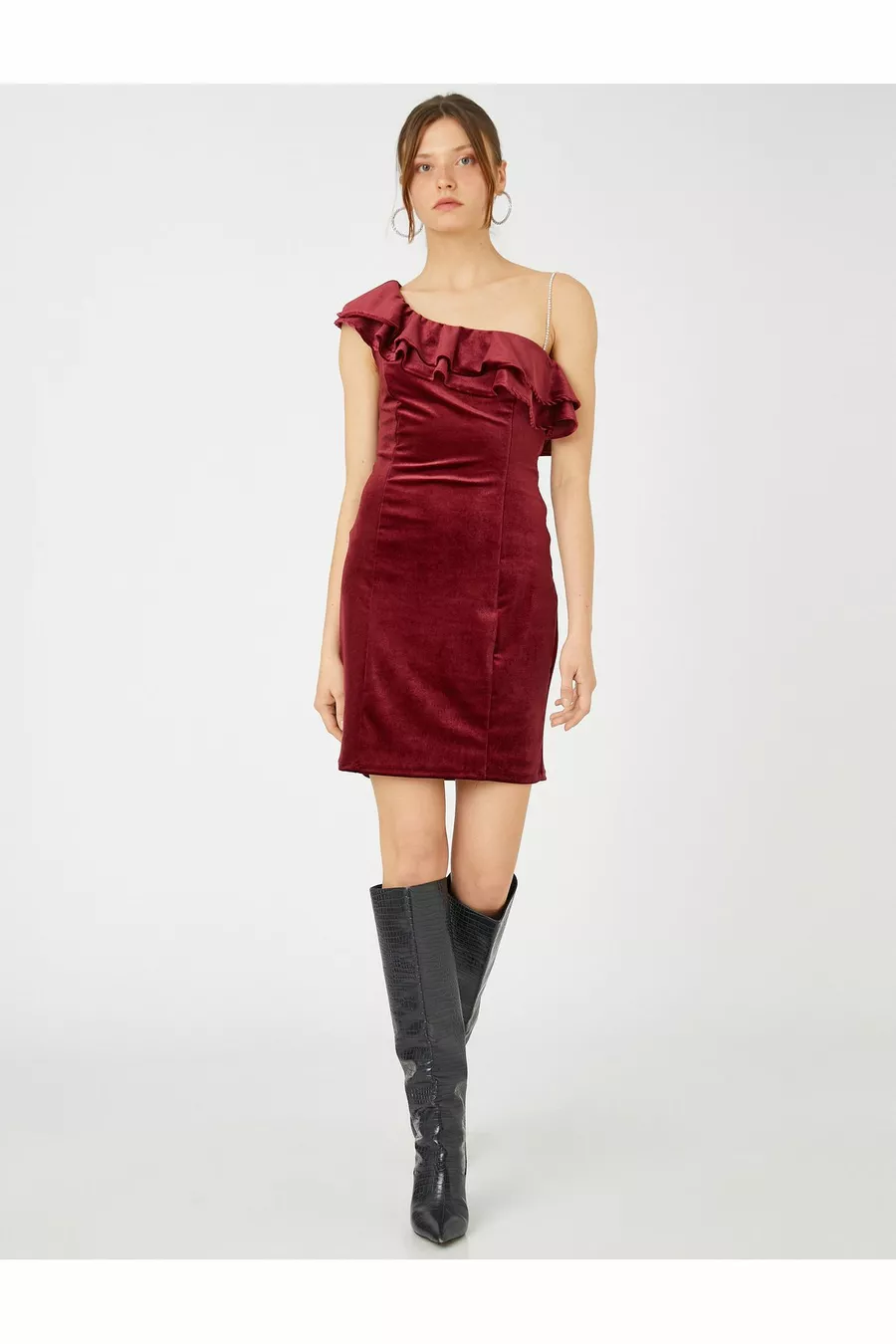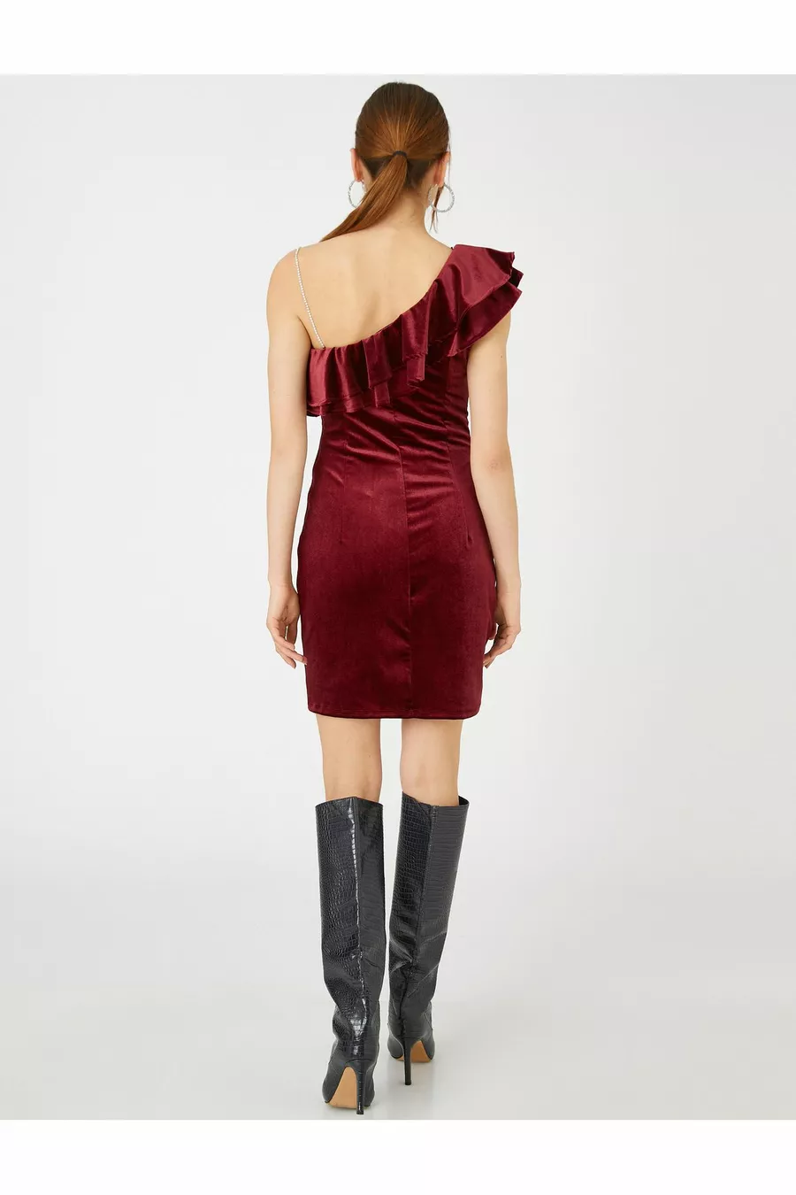 Samt Mini Abendkleid Eine Schulter Volant Stein Detail