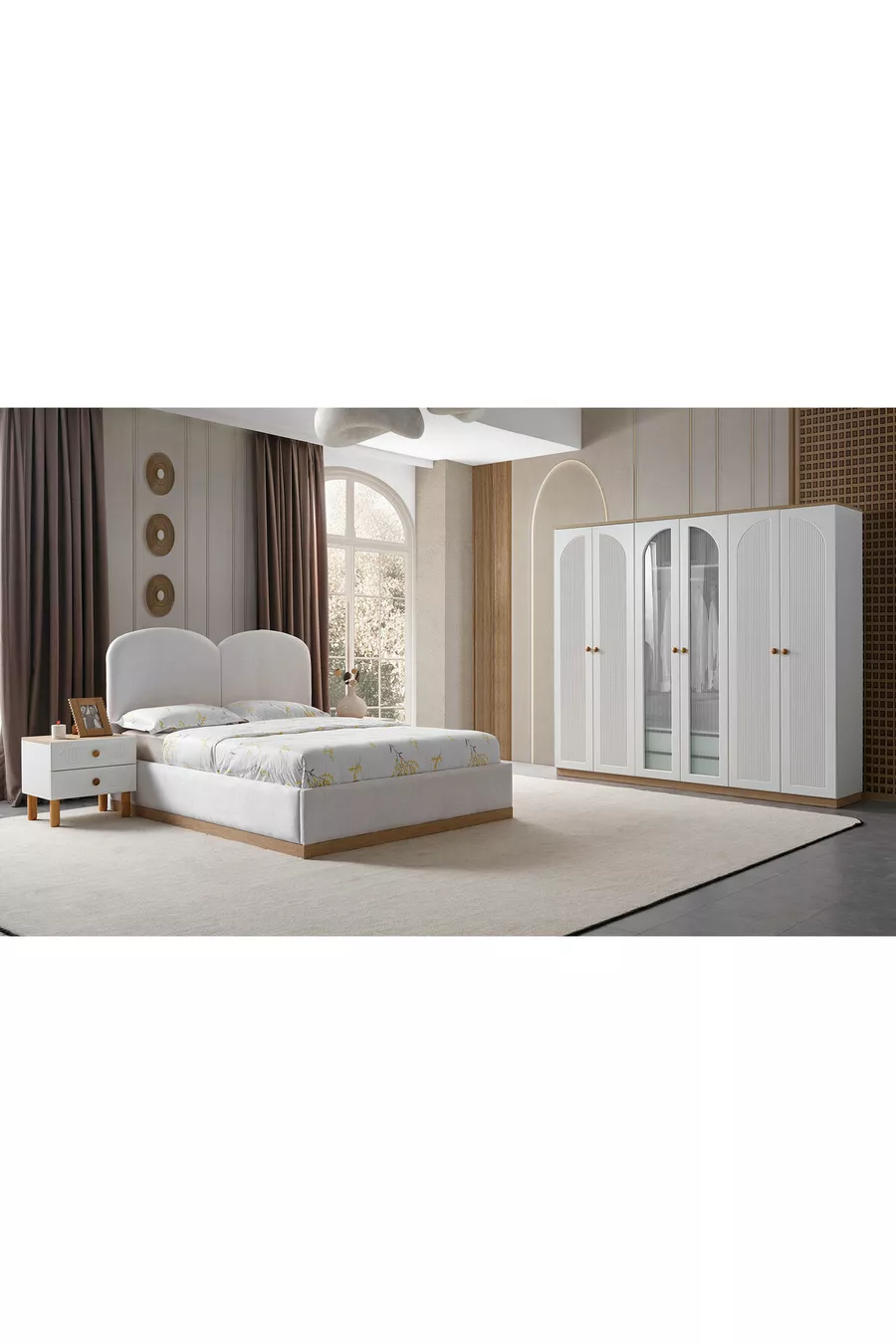 Farbe: Mehrfarbig Bettgestell/Matratzenmaß: 160 x 200 Bettgestell-Funktion: Mit Bettkasten Schrank-Funktion: Mit Spiegel Schrankkorpus-Material: MDF Anzahl der Türen: 6 Stil: Modern Thema / Stil: Modern Herkunft: TR