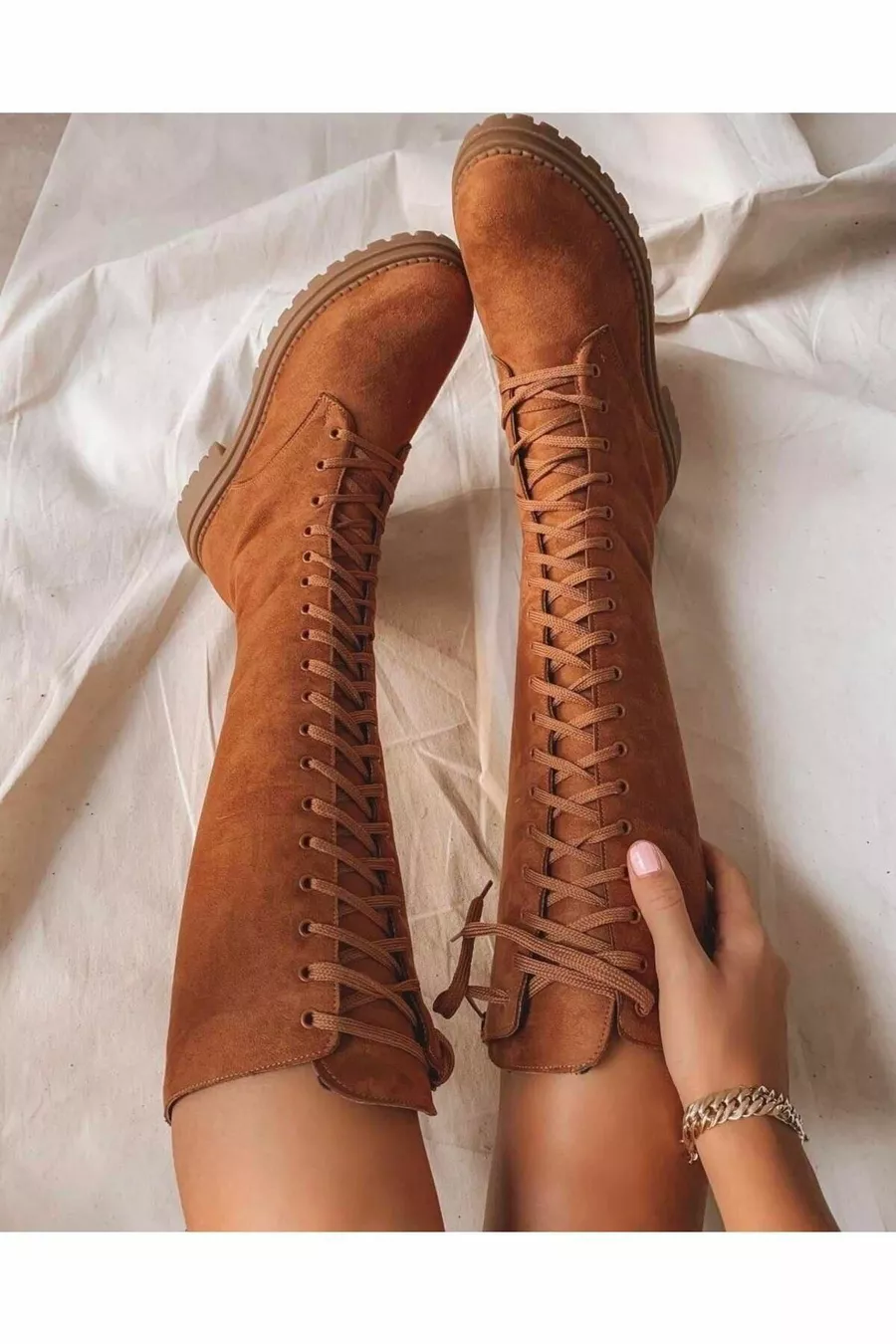 Schuhstiefel bis zur langen Schnürung
