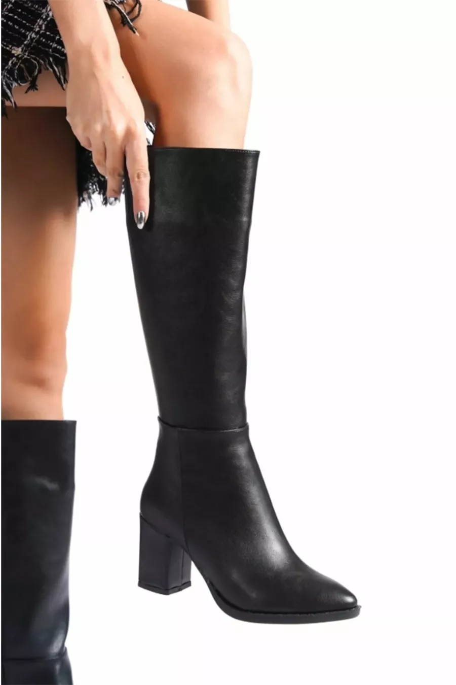 Schwarze Klassische Damenstiefel mit Absatz mit spitzer Zehenpartie