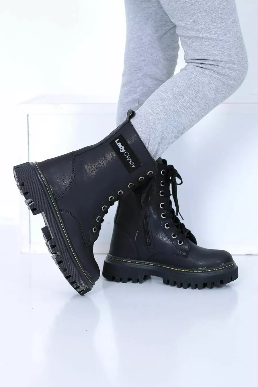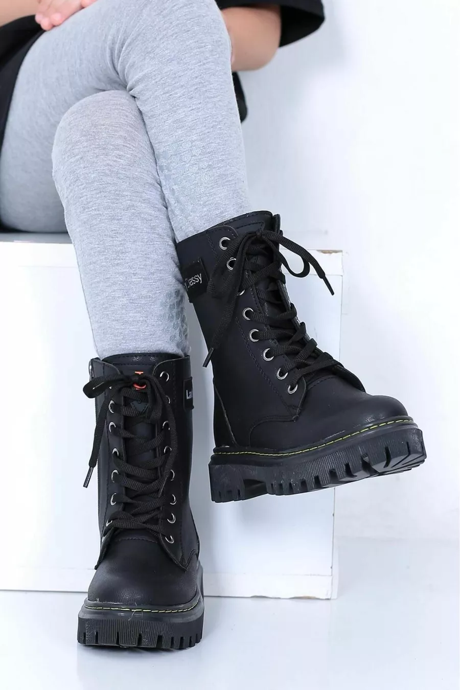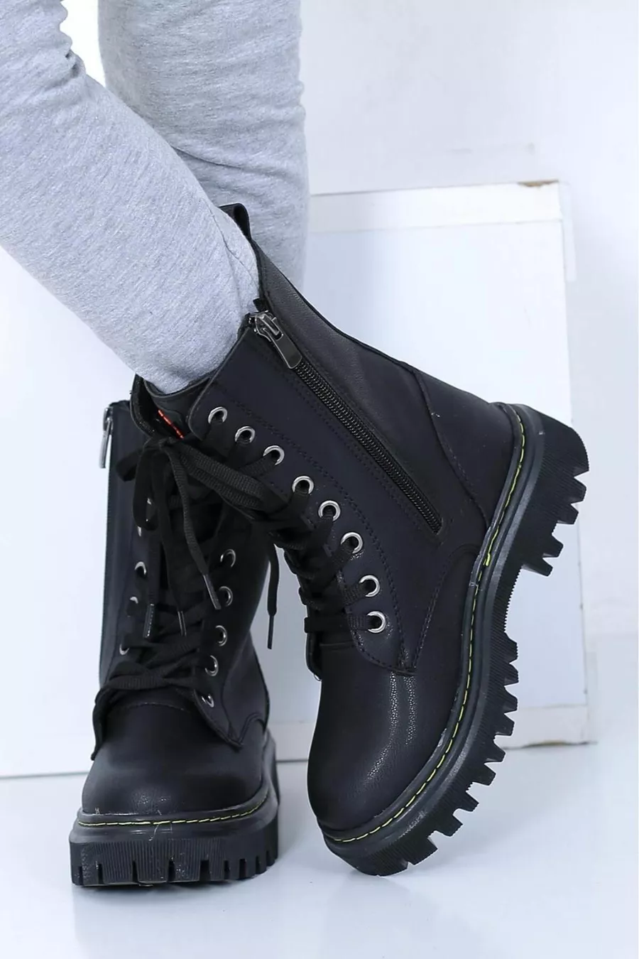 Schwarze Mädchen mit Schnürstiefeln mit Reißverschluss und Parachute Detailed