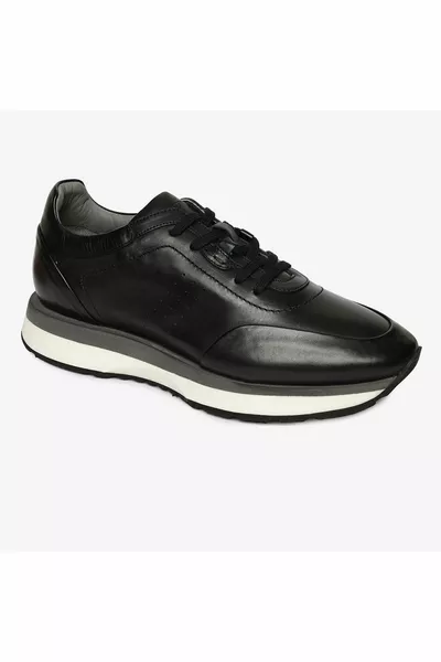Schwarze Sneaker-Schuhe aus echtem Leder für Herren