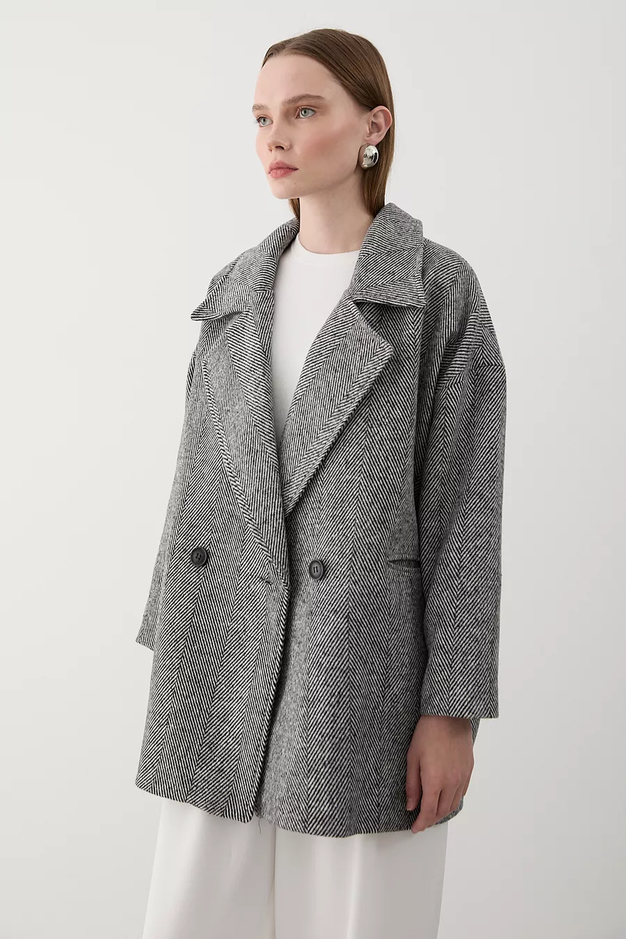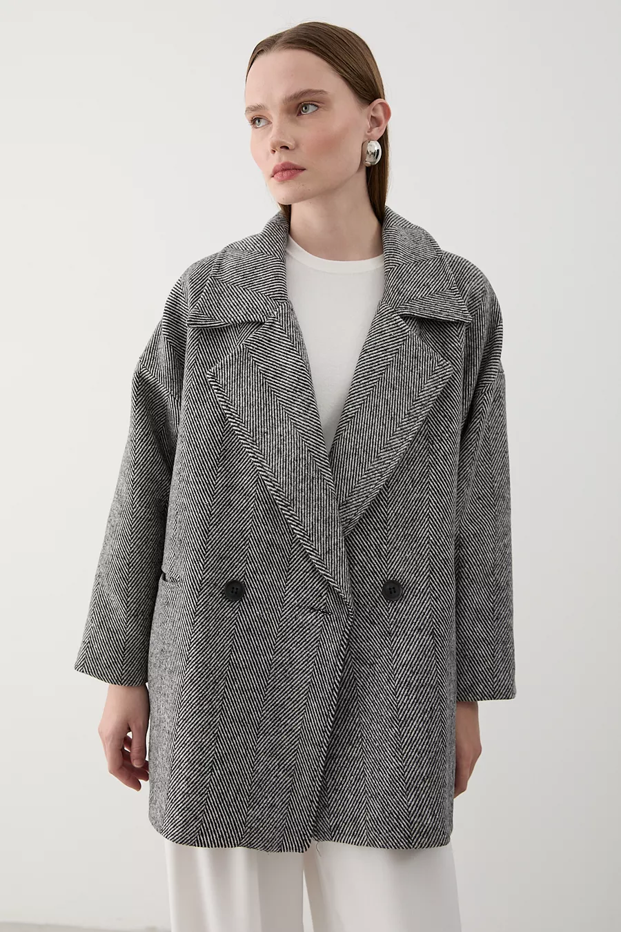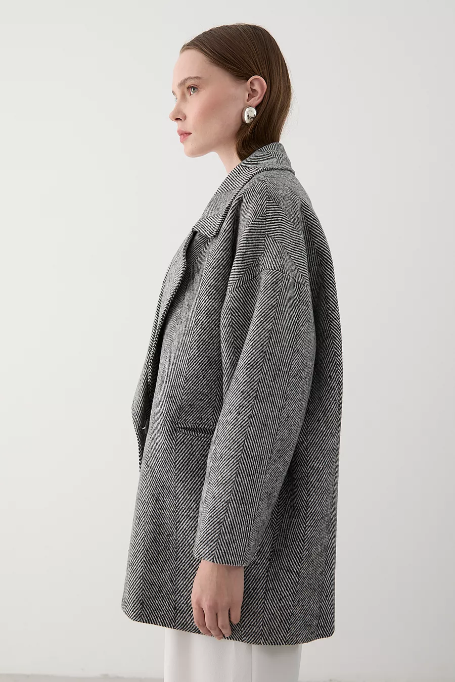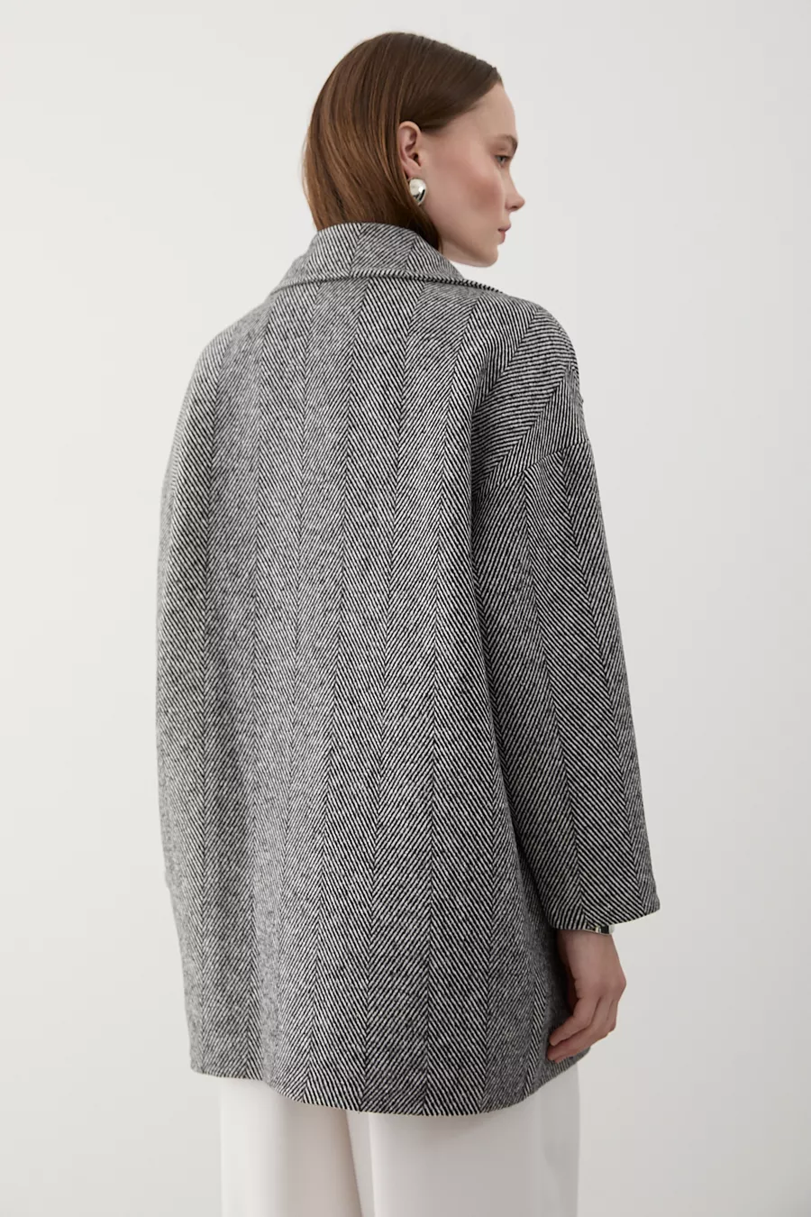 Schnitt: Regular Stoffart: Gewebe Farbe: Schwarz Kragenart: Sakko-Kragen Muster: Fischgrät Produktdetails: Gefüttert Produkttyp: Gerade Taschen: Zwei Taschen Stärke: Mittel Futter: Gefüttert Länge: Regular Silhouette: Basic Anlass: Casual/Alltag Kollektion: Basic Ärmellänge: Lang Ärmelform: Standardärmel Zusatzmerkmale: Keine Zusatzmerkmale Fülltechnik: Ohne Füllung Persona: Keine Persona Verschlussart: Knopfleiste Druck/Sticktechnik: Ohne Druck Füllmaterial: Ohne Füllung Gürtel-/Taillenstatus: Ohne Gürtel Material: Polyester Materialzusammensetzung: 100% Viskose Webart: Kaschmirstoff Waschanleitung: T44 Herkunft: TR Verpackung: Keine Verpackung