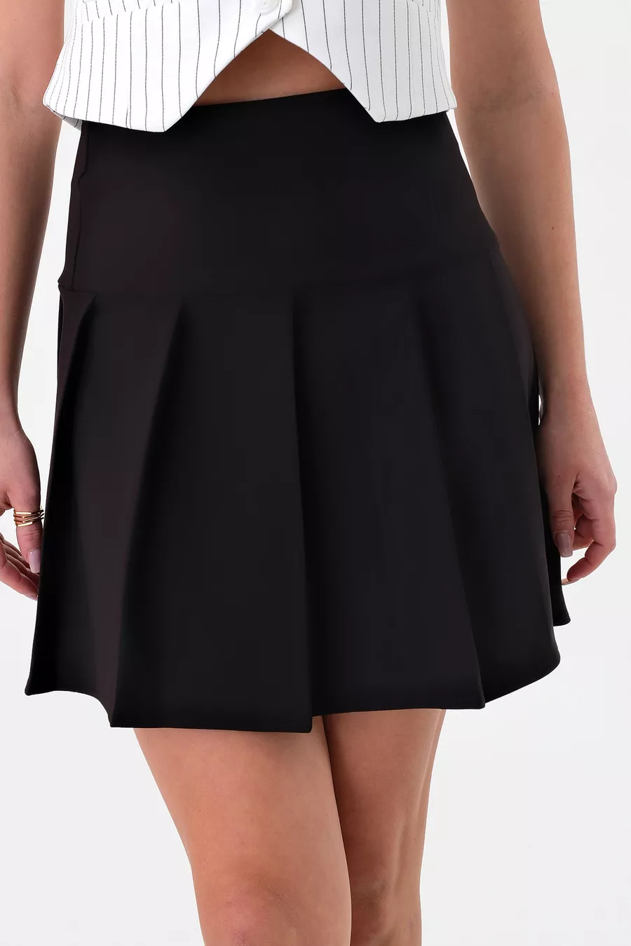 Schwarzer, plissierter Minirock aus gewebtem Stoff