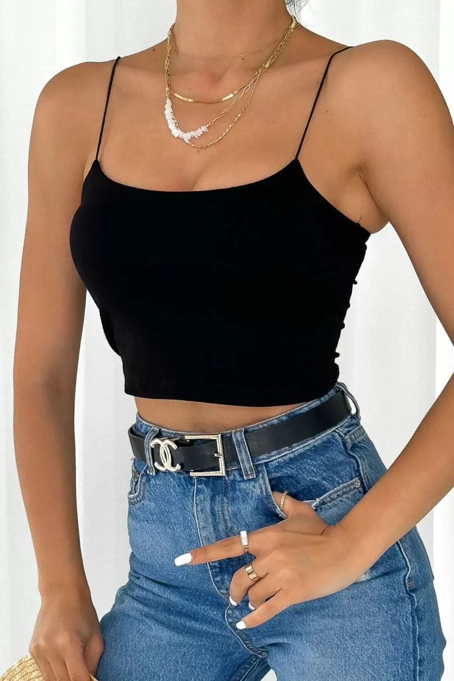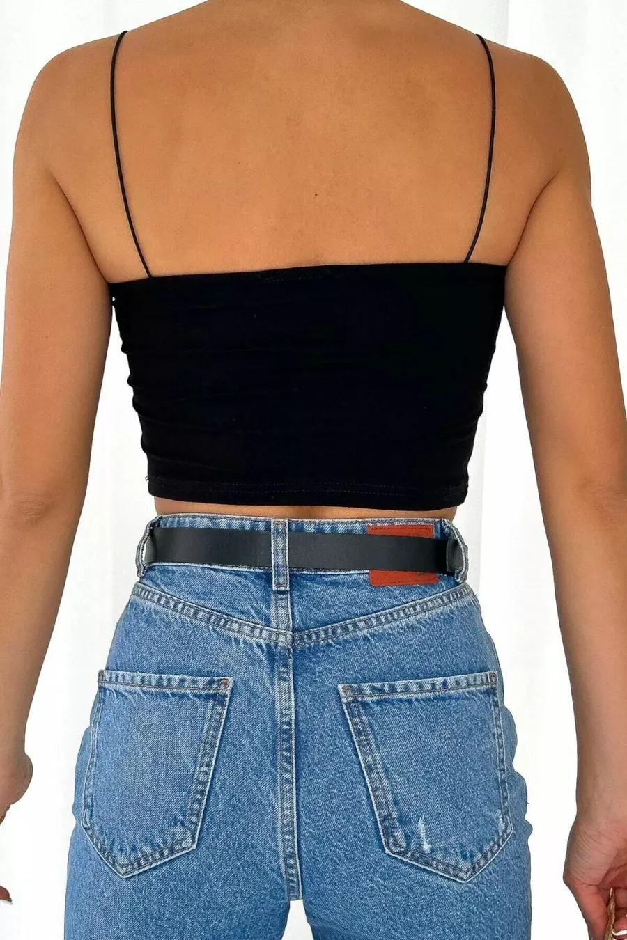 Schwarzes Bustier-Crop-Top mit Trägern