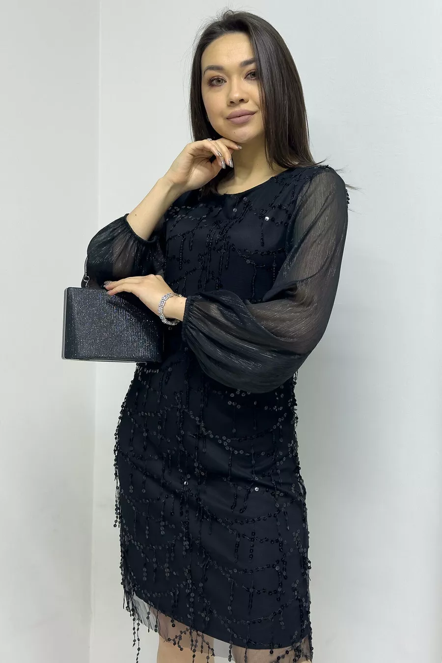 Schwarzes Pulpayet Abendkleid in großen Größen