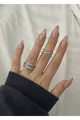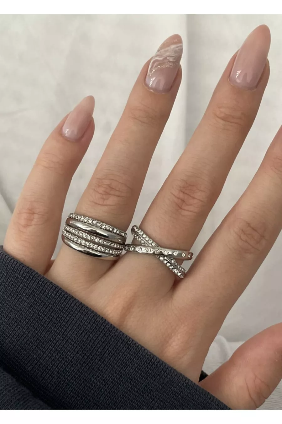 Silberfarbener Ring-Set mit Zirkonsteinen, Kreuz- und glattem Design