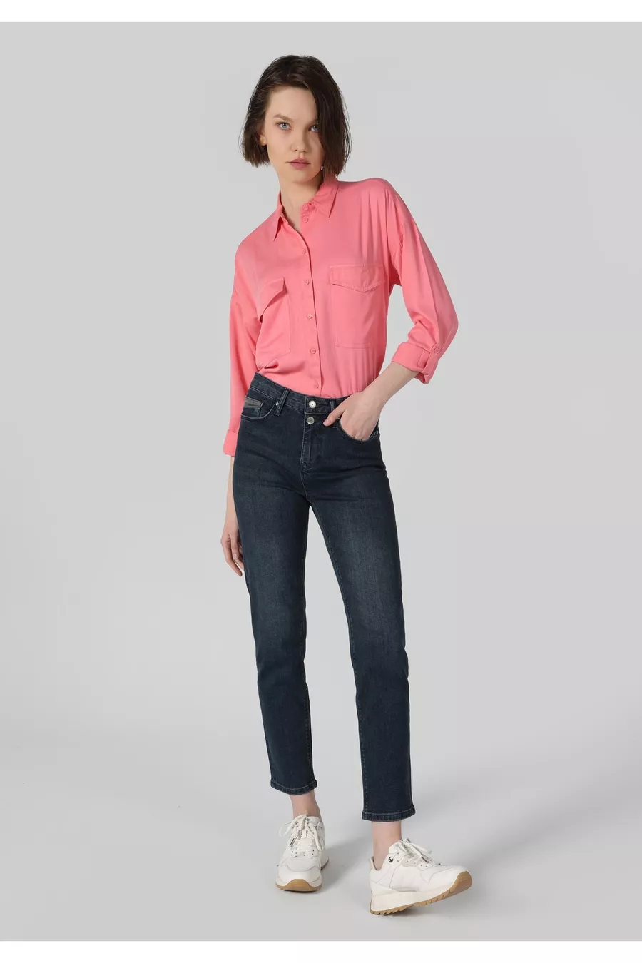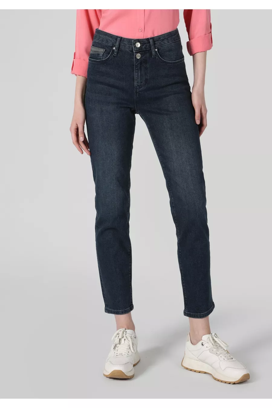 Slim Fit Mittelbund Gerade Bein Damen Indigo Jeanshose
