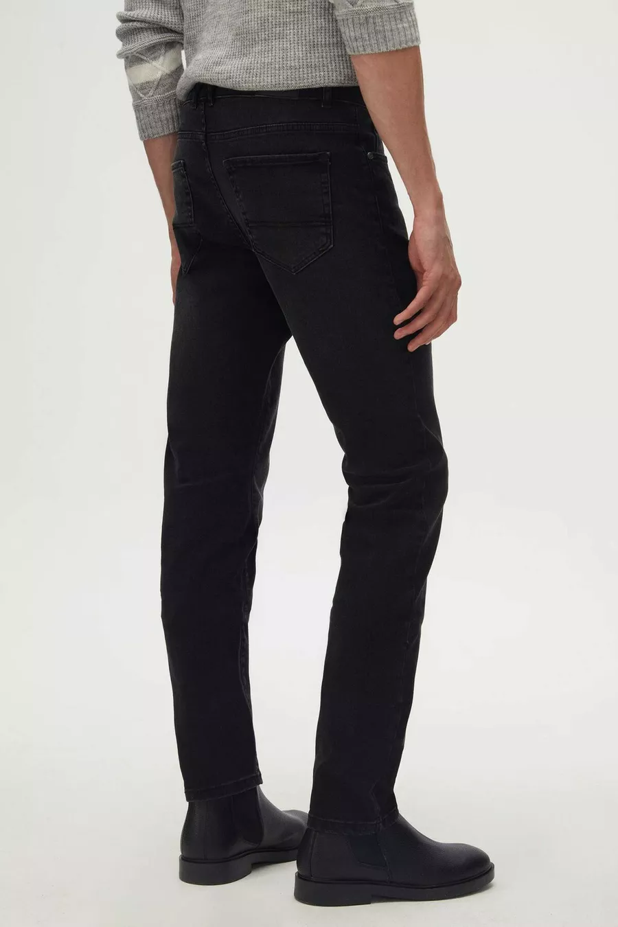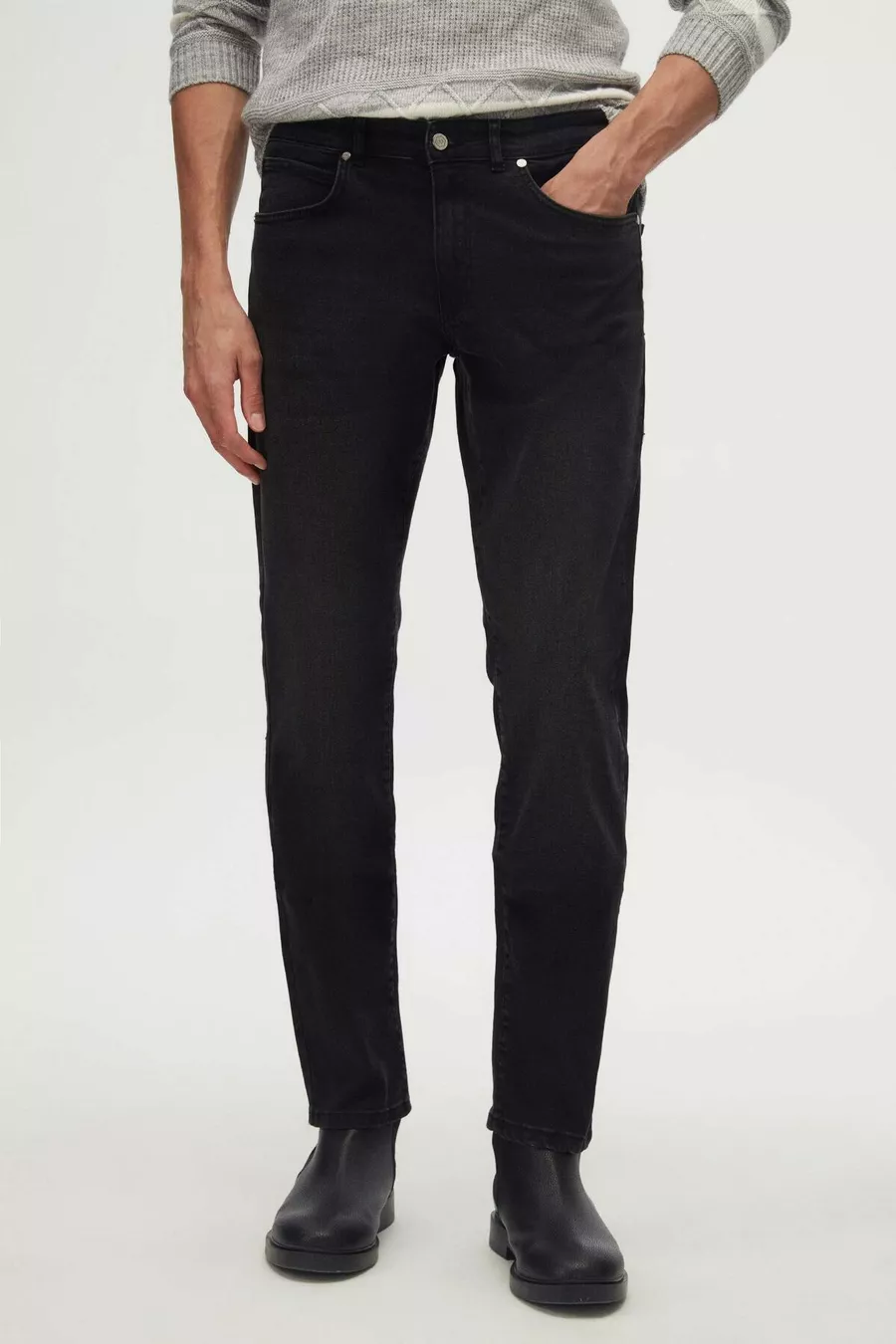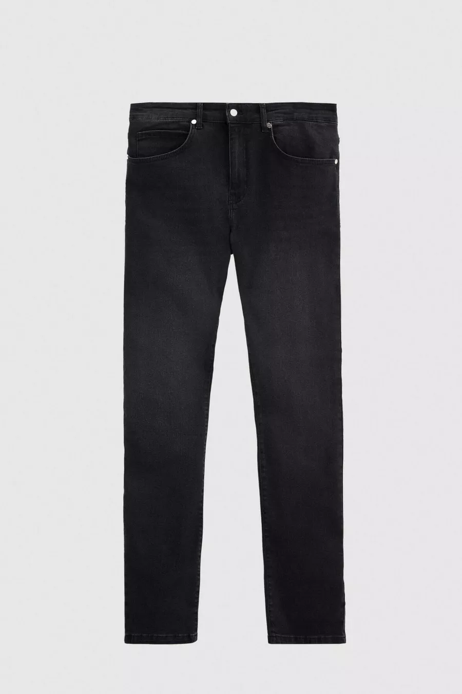 Slim Fit Anthrazit Jeans mit fünf Taschen, gerader Schnitt, elastisches, gewaschenes Denim