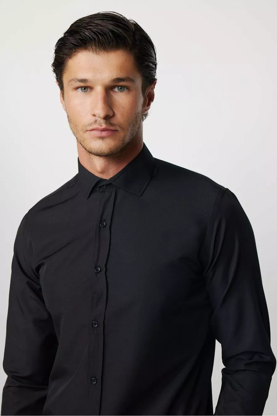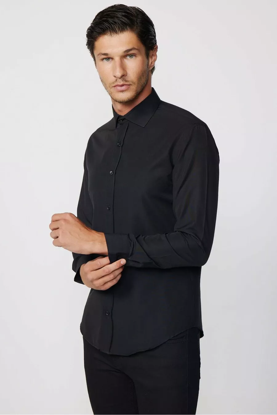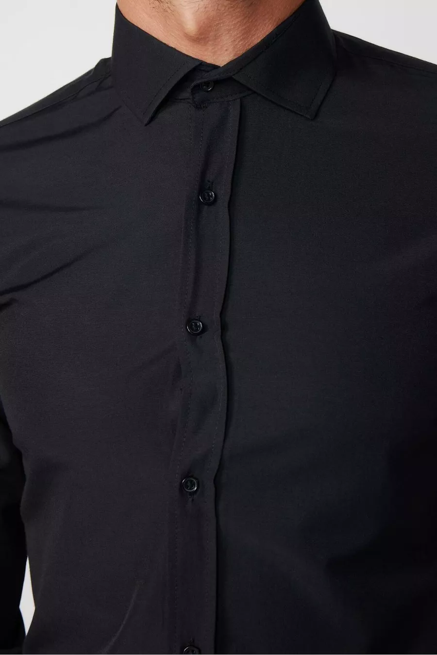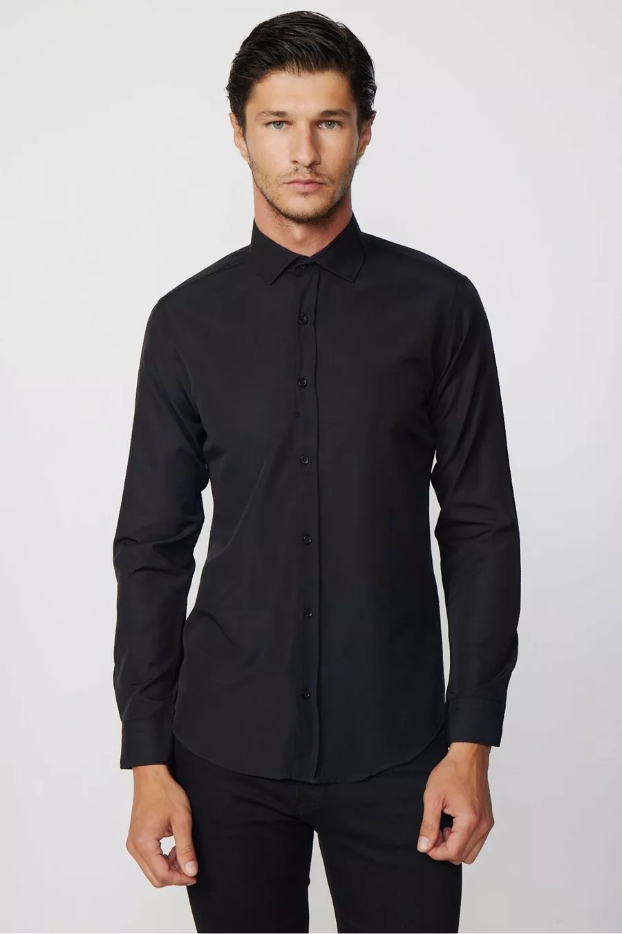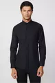 Slim Fit Langarm Baumwollhemd Einfach zu Bügeln Schwarz für Herren