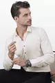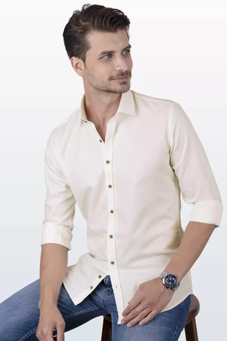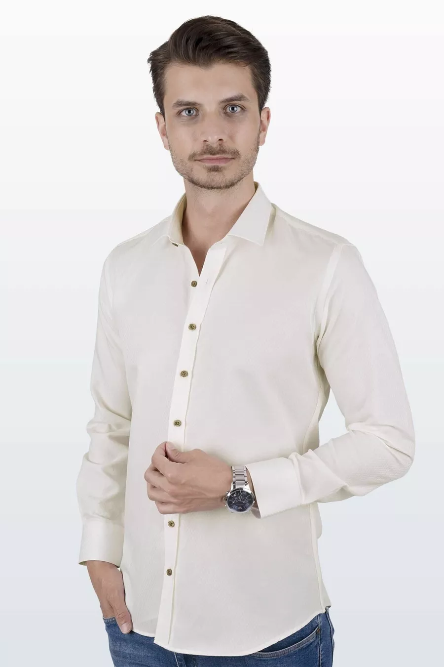 Slim Fit Herrenhemd mit Creme-Baklava-Muster