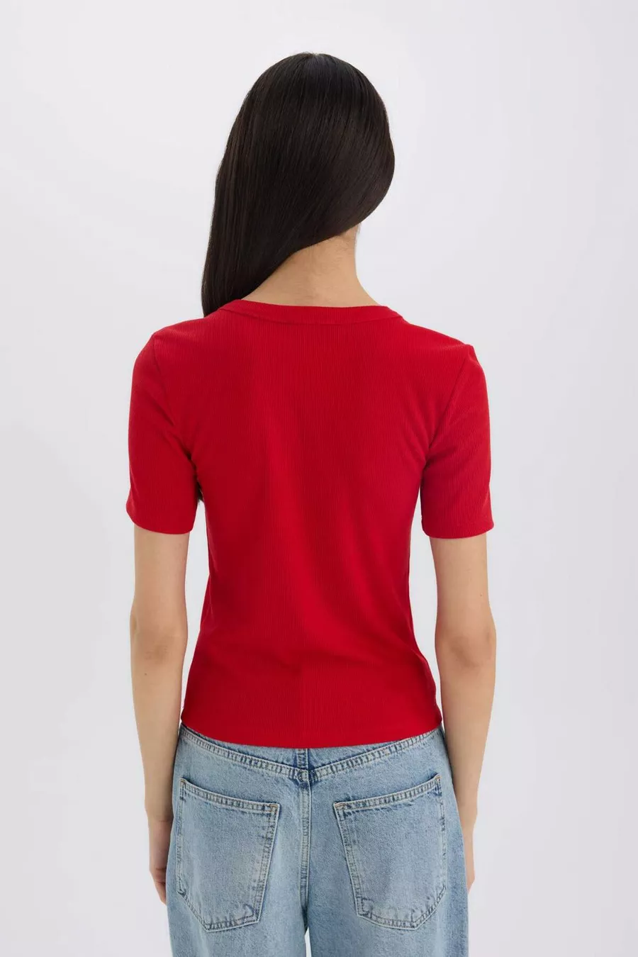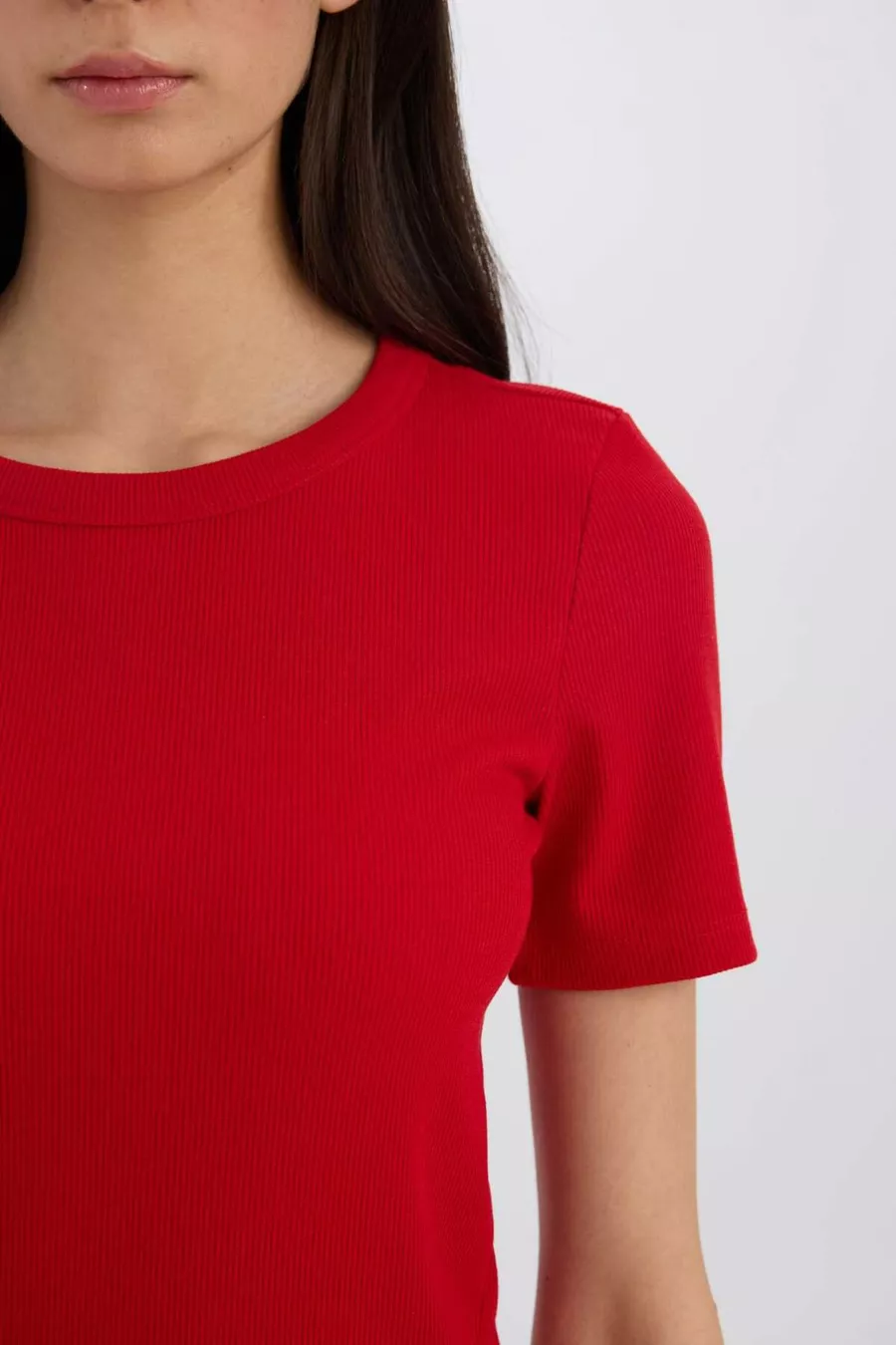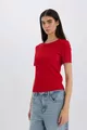 Slim Fit Enganliegendes T-Shirt mit Rundhalsausschnitt, Basic, Gerippt, Kurzarm, Rot AU