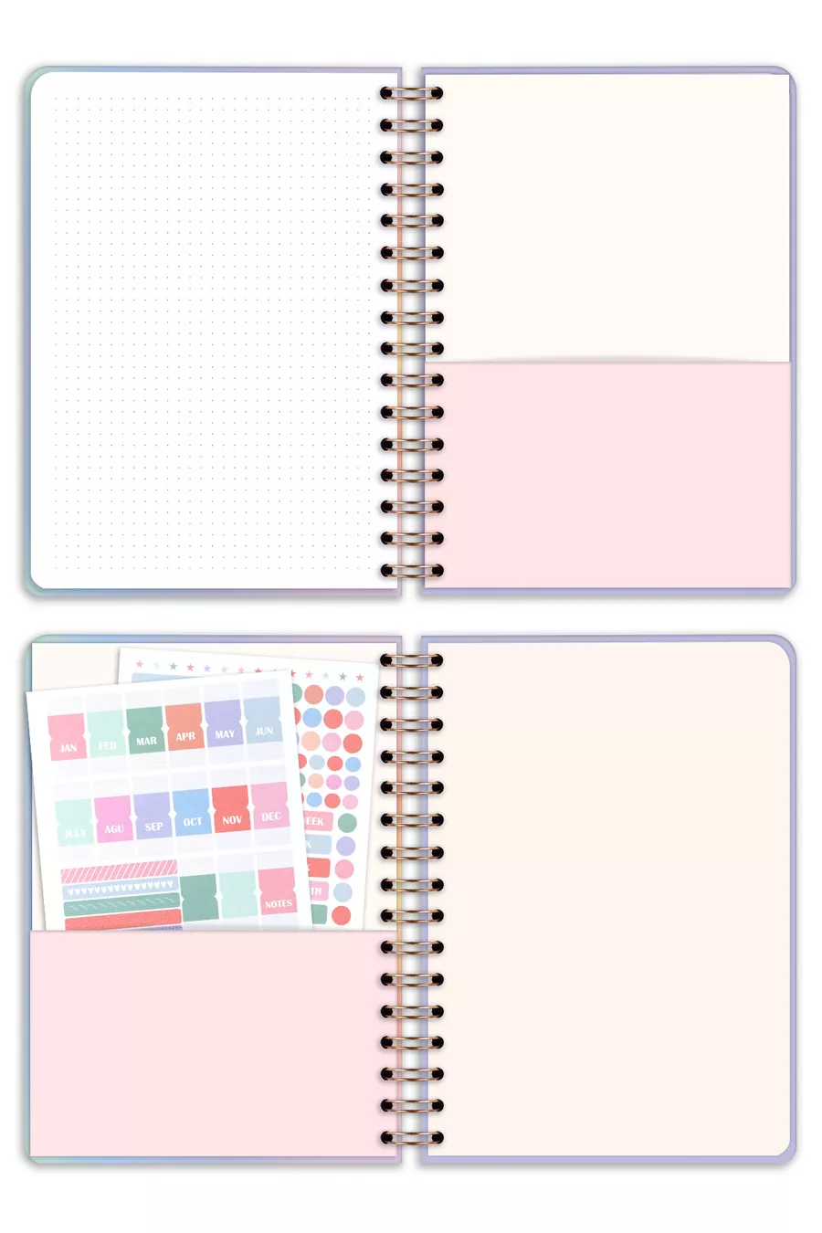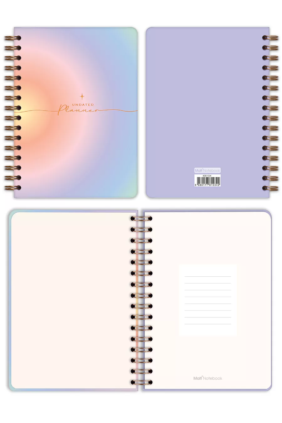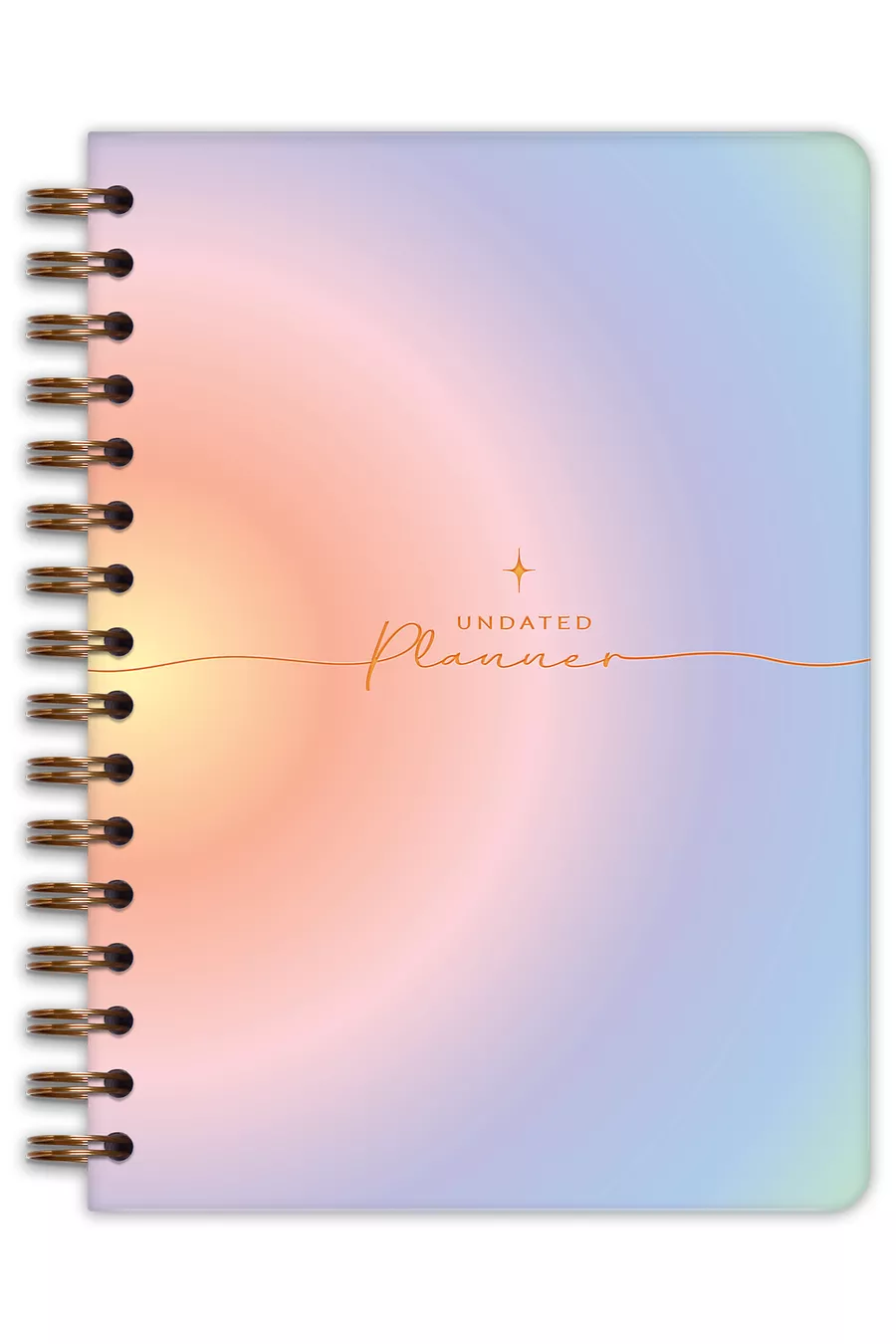 Spiralgebundener Unbegrenzt Einsetzbarer Planer Kalender mit Motivationsseiten in Regenbogenfarben