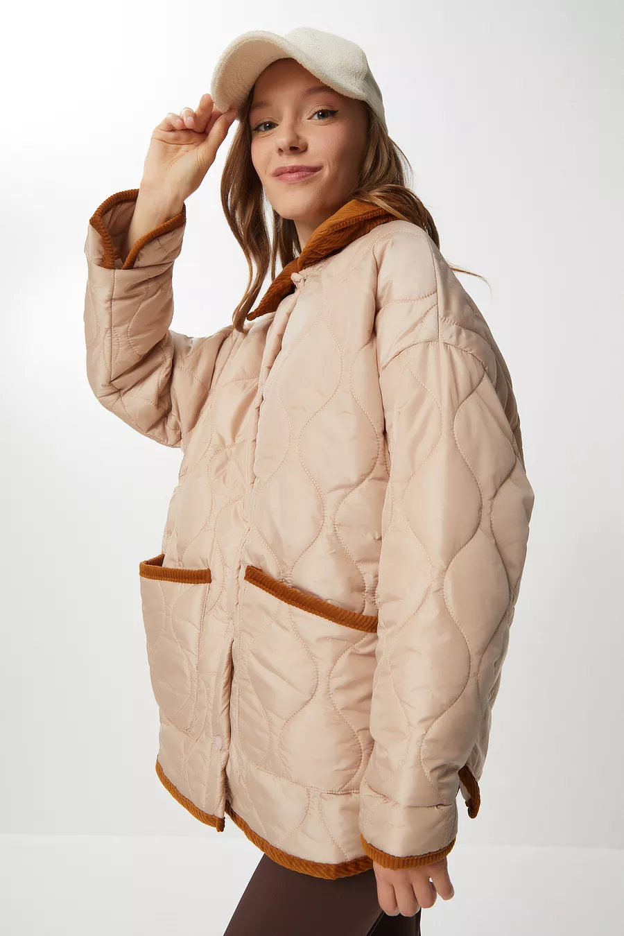 Schnitt: Oversize Kragenart: Polokragen Material: Polyester Stoffart: Gewebe Farbe: Beige Muster: Uni Produktdetails: Gefüttert Produkttyp: Uni Ärmellänge: Lang Ärmelform: Standardärmeln Futter: Ohne Futter Länge: Lang Anlass: Lässig/Alltag Silhouette: Basic Technik: Steppung Fülltechnik: Steppung Nachhaltigkeitsdetail: Nein Gürtelzustand: Gürtel los Füllmaterial: Polyester Druck-/Sticktechnik: Ohne Druck Webart: Samt Waschanleitung: Typ 2 Herkunft: TR