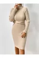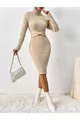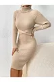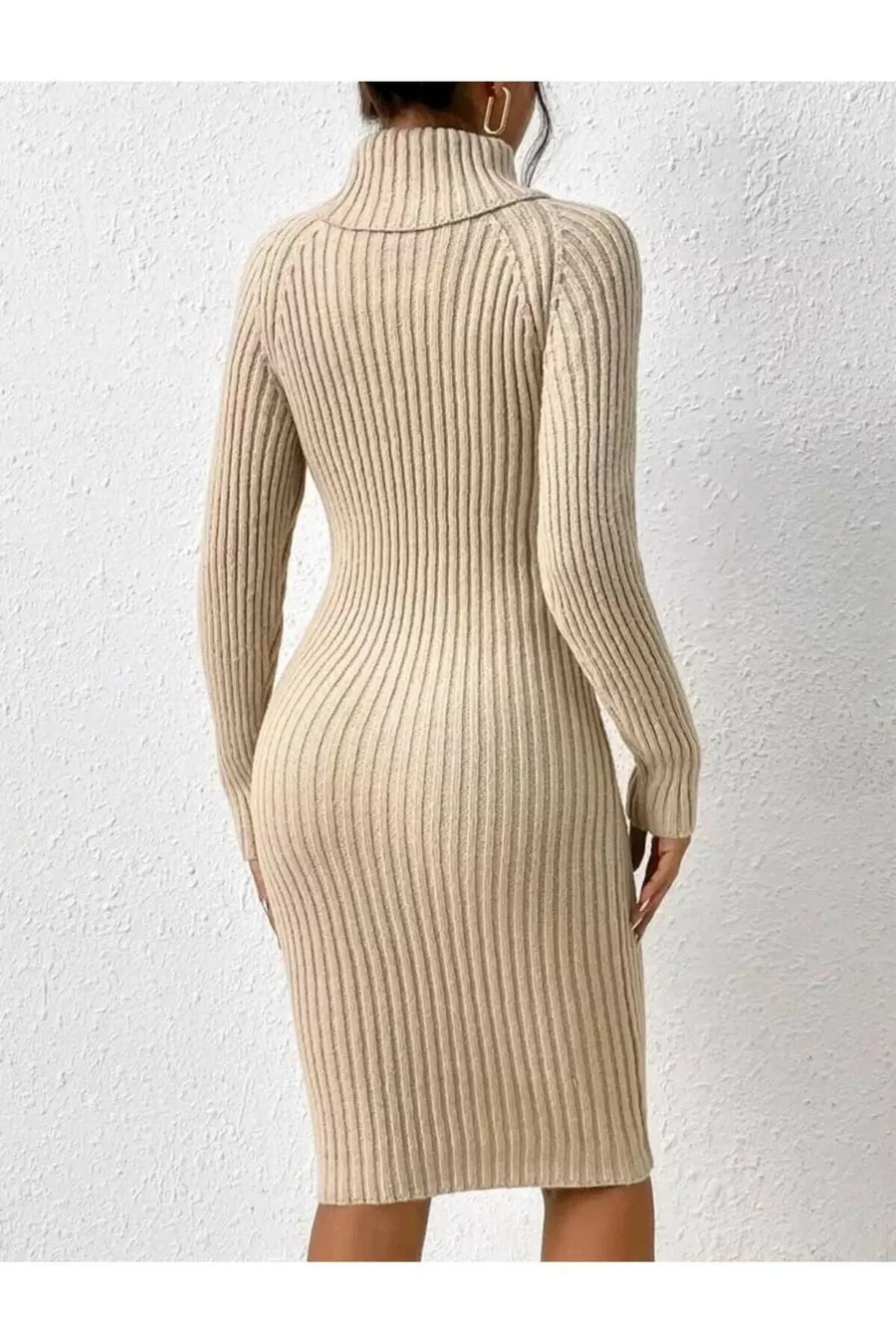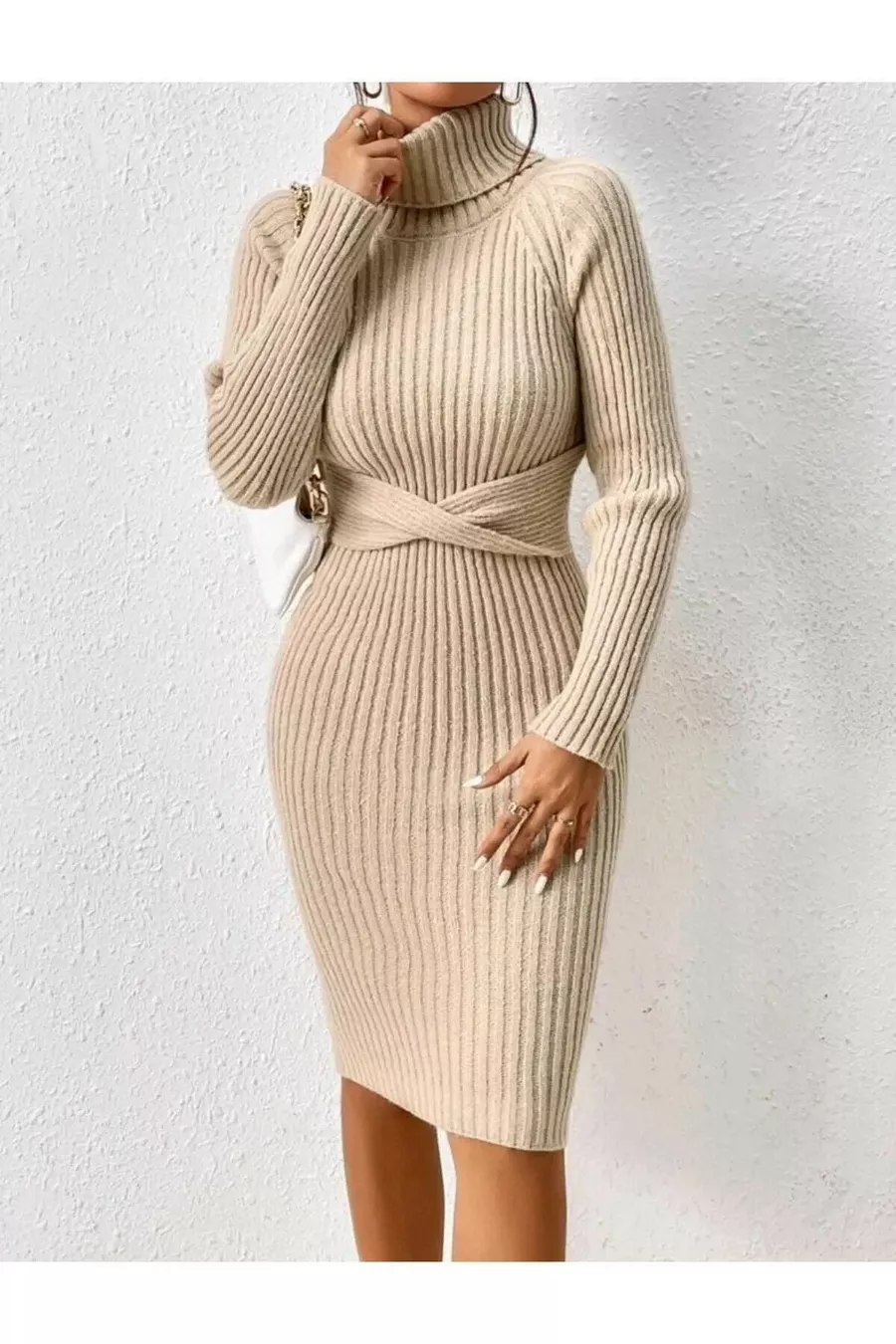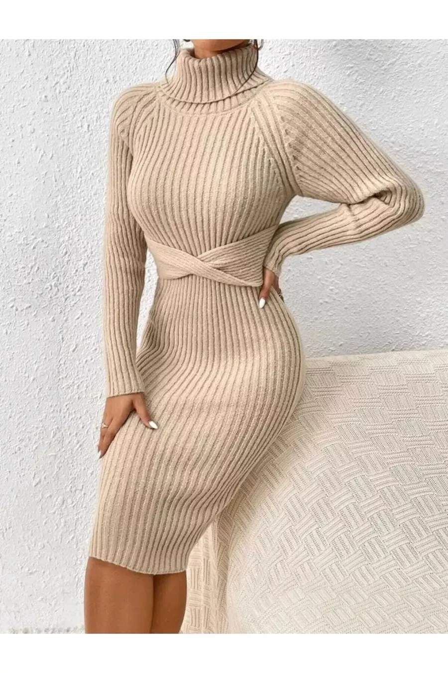 Strickkleid mit Rollkragen, Rippdetails und Schleifendetail, figurbetont, lang
