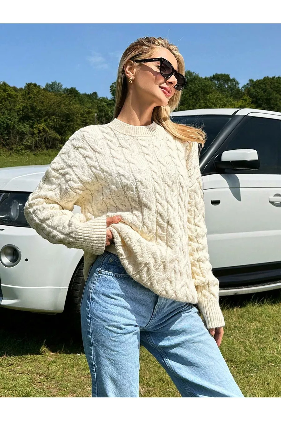 Strickpullover für Damen mit Zopfmuster