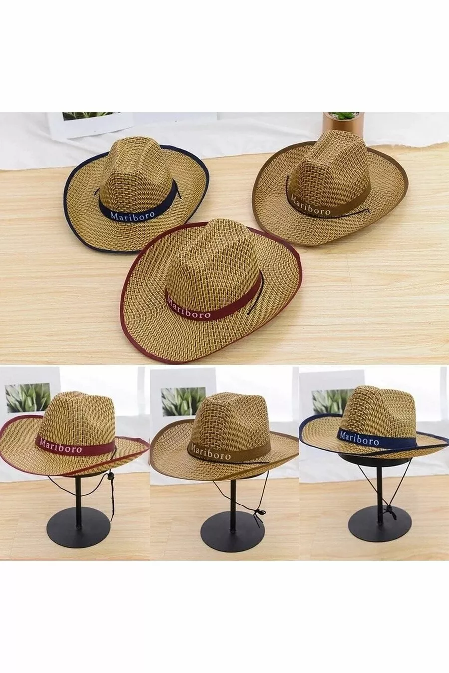 Strohhut mit Schnürung im Mariboro-Stil Cowboyhut Sommerfederhut